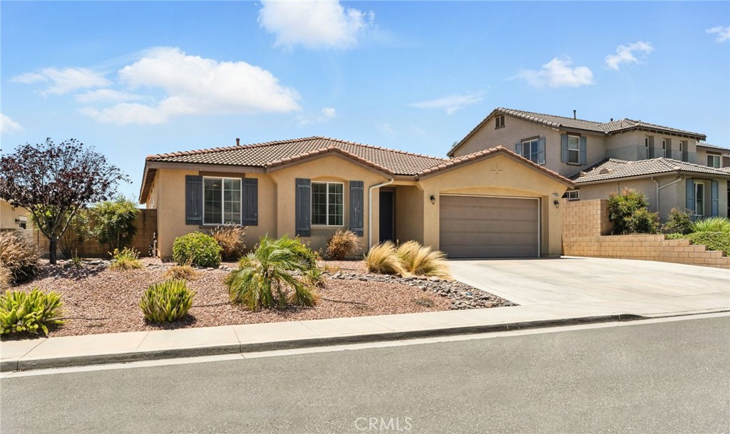Fall in Love with This Rare Single-Story Beauty in Rolling Hills! Welcome to the home you’ve been waiting for—where style, comfort, and convenience come together in one extraordinary package. Located in the highly sought-after Rolling Hills community, this rare single-story stunner, built in 2010, offers the perfect blend of modern upgrades and timeless charm. From the moment you step inside, you’ll feel it: this is home. The open-concept layout is bright and welcoming, with rich laminate wood flooring guiding you from the entryway through the kitchen and hallway. At the heart of it all is a chef-inspired kitchen—featuring stainless steel appliances, granite countertops, a spacious island, and a custom baker’s pantry. Whether you’re whipping up a weeknight meal or hosting a holiday gathering, this space is designed to impress. The kitchen flows effortlessly into the dining area and expansive great room, creating the ideal setting for connection, comfort, and celebration. When it’s time to unwind, retreat to your private primary suite—your own sanctuary complete with a walk-in closet, dual sinks, a step-in shower, and a spa-worthy oversized soaking tub. On the opposite side of the home, two additional bedrooms provide flexibility for guests, kids, or a home office—including one with a built-in desk space, perfect for remote work or study. A full second bathroom, large linen closet, and thoughtfully designed laundry room with upper cabinets and side counter add even more convenience to your daily routine. Step outside and discover your private backyard oasis—lush green lawn, colorful flower beds, and stamped concrete patio, all maintained by an automated drip system. The low-maintenance front yard and extended driveway add curb appeal and practicality. And don’t miss the garage with its custom overhead storage—keeping your space organized and clutter-free. Tucked away in a peaceful neighborhood yet just minutes from the 215 freeway, award-winning schools, top shopping, dining, and scenic parks—this home truly has it all. Whether you’re starting a new chapter or searching for your forever home, this is a rare opportunity you don’t want to miss. Homes like this don’t come around often—schedule your private tour today and make it yours before someone else does!
