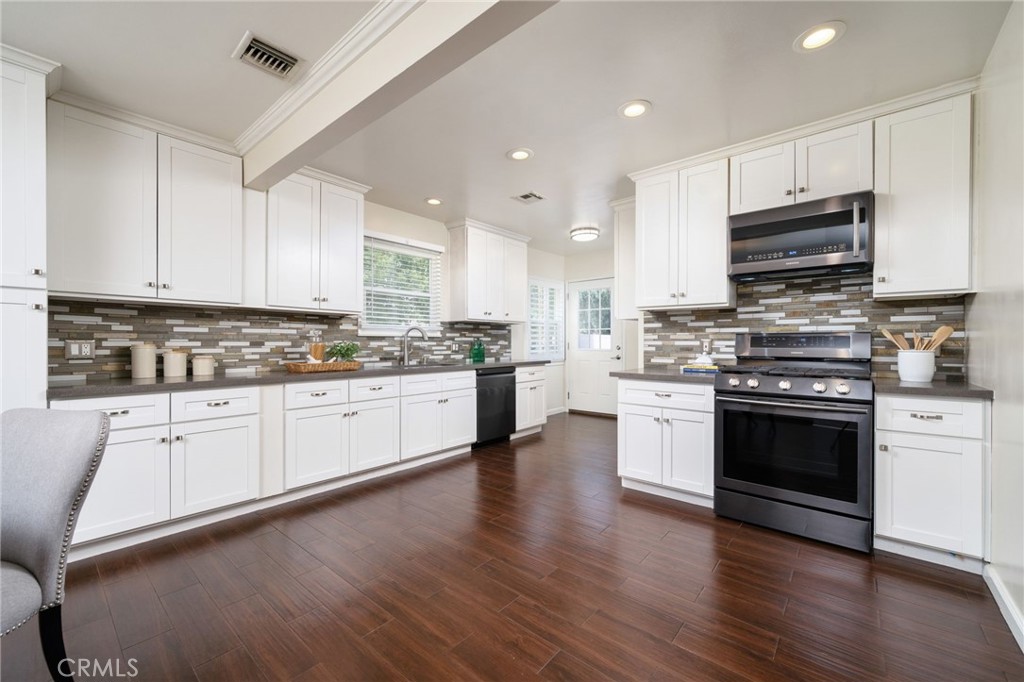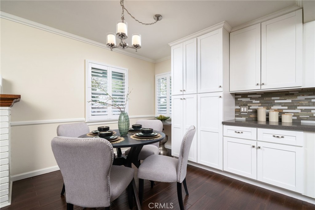 Lovely three-bedroom two-bath home located within walking distance of highly desirable schools, downtown Glendora Village area, shopping, and transportation in wonderful North Glendora neighborhood. Spacious living room with wood floors, crown moldings, plantation shutters, and fireplace open to updated kitchen with dining area, white cabinetry, quartz counter tops, newer appliances, and plenty of storage. Two bedrooms share a full hallway bathroom with updated dual sink vanity and tiled shower. Primary bedroom with en suite bathroom, extra storage, and slider to backyard. Stackable washer/gas dryer hooks ups centrally located to bedrooms in convenient hallway laundry closet. Home boasts two spacious bonus rooms suitable for home office space, exercise or hobby area, or generous extra storage. Large backyard with covered patio area great for entertaining or outside dinners on a warm summer evening. Room for a pool or possible ADU; please confirm all requirements with the city of Glendora. This is a wonderful home in a highly desirable neighborhood.