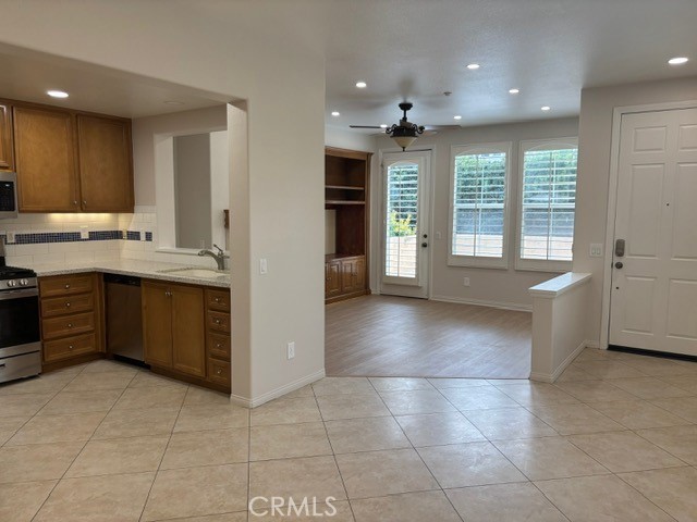 An outstanding opportunity to live in the wonderful community of Atherton Glen located in the heart of Ladera Ranch. This fantastic 3 Bedroom 2.5 bath home boasts over 1,600 square feet of open living space and is located within walking distance to award winning schools, library, and parks. This home features quartz counter tops, stainless steel appliances with included stainless steel refrigerator, plantation shutters, recessed lighting, separate family room with cozy fireplace, dining room, upstairs balcony off secondary bedroom, and a spacious primary suite with walk in closet, dual vanity, and soaking tub. Additional highlights include a full size 2 car attached garage, alarm system (activation required by tenant), free Cox high speed internet service, and large oversized enclosed private patio. Come see this wonderful family home!