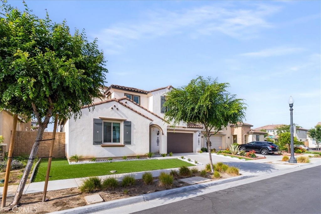 Welcome to the esteemed Ontario Ranch Community! This exquisite 5-bedroom, 4-bathroom residence spans 3,237 sqft. of luxury living and was impeccably constructed in 2021. Boasting an array of exceptional features, this remarkable home includes a main-level bedroom with an ensuite bathroom, remote control window shades, a generously sized walk-in pantry, a versatile loft room space, laundry room, solar panels, a soft water softener, pre-wired EV hookup, and spacious walk-in closets, among many others. Upon entering, you’re greeted by soaring ceilings with an abundance of natural light. The open floor plan living room is perfect for family gatherings and hosting. The gourmet kitchen features contemporary amenities, including stainless steel appliances, granite countertops, and soft-close cabinets. A standout feature is the oversized walk-in pantry, ideal for keeping culinary essentials organized. Adjacent to the kitchen, a craft room offers a creative space for hobbies and projects. Plush carpet leads to the upper level, where a bonus room (loft), laundry room, generously proportioned bedrooms, and a master suite await. The master bathroom showcases dual vanities and a sprawling walk-in closet. Living room equipped with flush mounted ceiling speakers, built-in surround sound hook ups and designated TV mount area. The Kitchen overlooking the living area is chef’s dream kitchen with walk-in pantry and top of the class appliances, kitchen island with breakfast nook. Electric curtains all over the house. With Solar panels and pre-wired EV (Electric Vehicle) hook up for all your future needs. Conveniently situated near shopping centers and major freeways 15 & 60, this home is also zoned for a highly rated high school. Come see this beautiful home today!