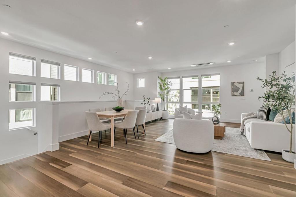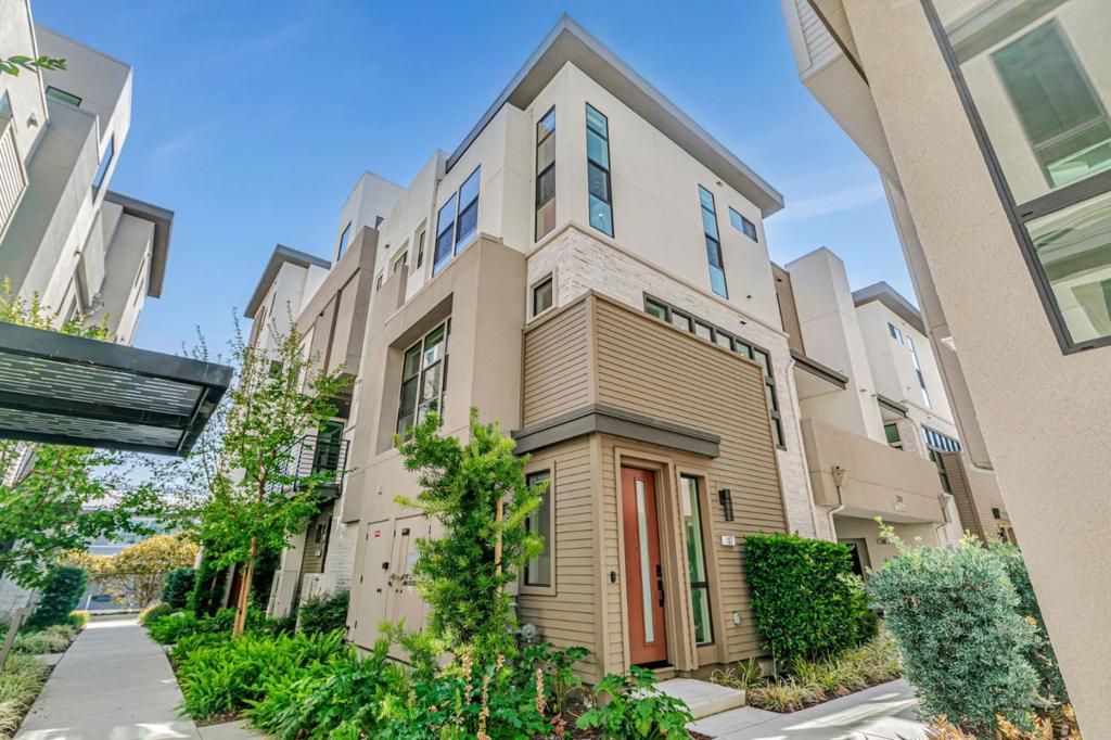 In a prime Santa Clara location, this 5-year-new modern townhome by award-winning SummerHill Homes showcases the MOST POPULAR FLOOR PLAN in Nuevo with 3 BEDROOMS + OFFICE and 2.5 bathrooms. The open-concept main level features soaring ceilings, abundant natural light, and a gourmet kitchen with premium finishes, while the office/den offers flexibility for work or guests. Upstairs, the serene primary suite is joined by two additional bedrooms with a stylish Jack-and-Jill bath. Each room has its own heating and cooling control for personalized comfort. Upgrades include a water softener, Hunter Douglas blinds, and an EV-ready 2-car garage with a bicycle rack that connects lifestyle to the nearby trail. Community amenities include a clubhouse, dog park, playgrounds, basketball court, picnic areas, and an outdoor movie lawn plus the benefit of low Santa Clara utilities. Walk to Nvidia, Qualcomm, Costco, Whole Foods, and Lawrence Caltrain, with easy access to Apple, Google, and Tesla, as well as major highways and expressways – putting all of Silicon Valley within easy reach.