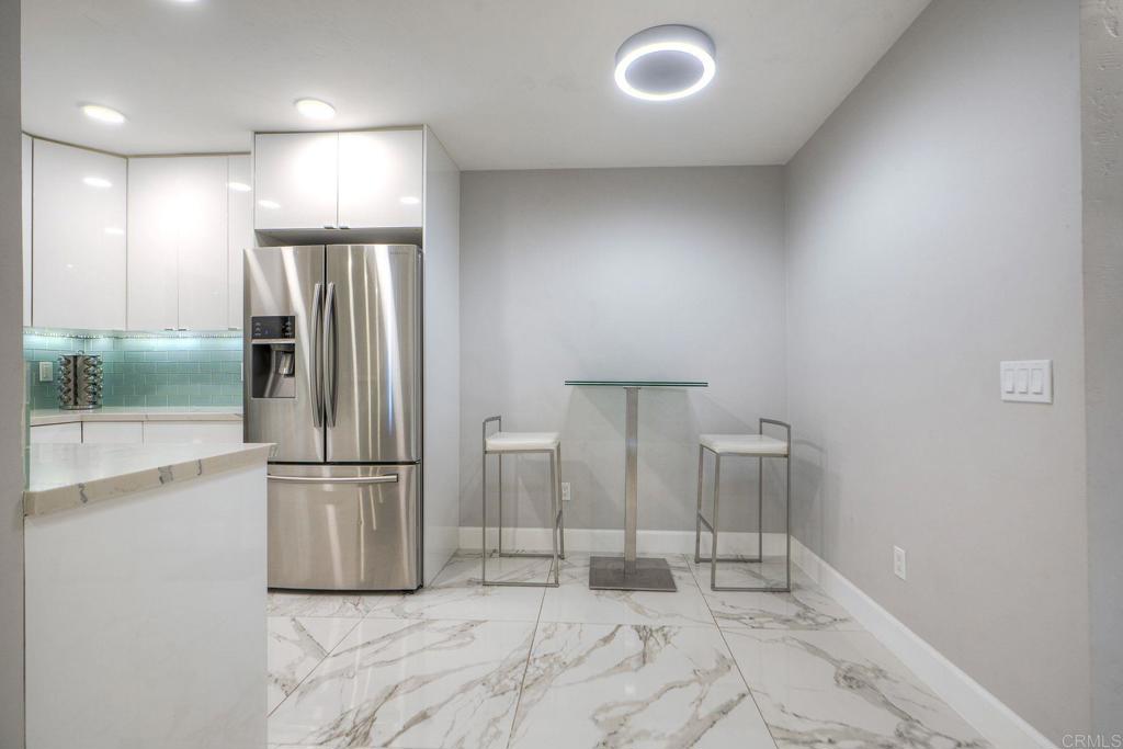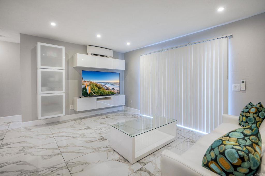 Every detail has been thoughtfully upgraded, making this immaculate unit truly stand out. The kitchen shines with sleek white cabinetry, striking aqua subway tile backsplash, quartz countertops, and modern stainless-steel appliances—including a dishwasher, stove, microwave, and refrigerator. Elegant marble-style porcelain tile flooring flows seamlessly throughout the home, and recessed lighting on dimmers with app-control, creating a clean and sophisticated look. Milgard dual-pane windows for the screen door and the bedroom window for extra comfort and noise reduction. The open living room offers built-in floating cabinets, and offers a Split System Cooling and Heating System—making it both functional and inviting. The bedroom features its own split system cooling/heating system as well and ceiling fan, a spacious closet with upgraded chrome rod and shelving. The bathroom has been completely and beautifully remodeled with marble-style porcelain tile, a chic vanity, and a lighted LED mirror that brings spa-like ambiance. This turnkey condo combines modern upgrades, comfort, and convenience all in one—an exceptional opportunity you won’t want to miss! This unit is located just minutes to state distinguished schools in San Marcos, University Cal State San Marcos, Palomar College, and the new Medical Hub in San Marcos/North County. Unit is located on the first floor with easy access and includes one parking space located at Space #28 available to use for viewings. Appliances included are Refrigerator, Dishwasher, Stove, Microwave and 2 Split Cooling/ Heating Systems, App-controlled lighting system. Financing available for conventional buyers with 20% down with approved lender. Great for a rental, the seller rented the property through VRBO, with summertime income ranging from $4,000 to $5,000 per month, and winter income around $2,500.