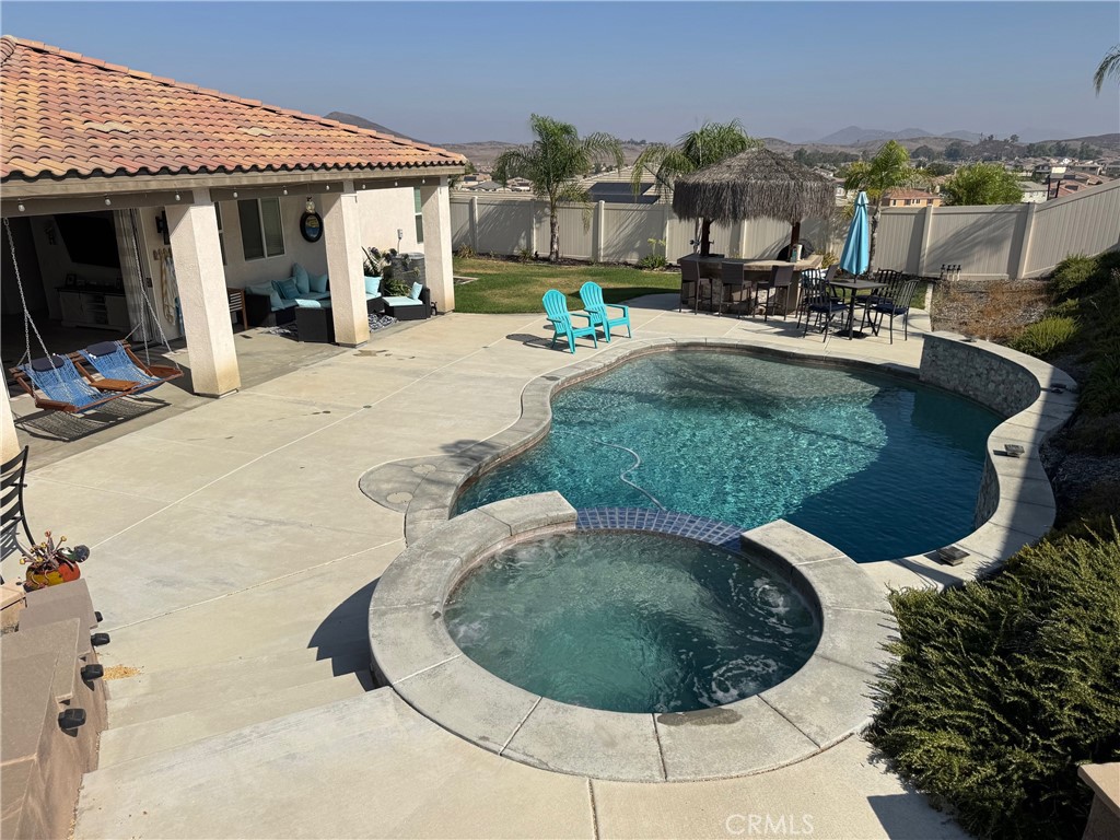 FOR LEASE – Resort-style living at its best! This stunning 3-bedroom, 3-bathroom home offers 2,091 square feet of living space on a spacious 13,504 sq. ft. lot. The backyard is an entertainer’s dream, featuring a free-form pool, elevated spa, gas firepit, covered patio, and a palapa complete with a Blaze BBQ, mini-fridge, and keg option. There is also room for potential RV or trailer parking, along with the privacy you’ll love. Inside, the family room opens fully to the backyard through beautiful sliding glass accordion doors, creating a seamless indoor-outdoor living experience. The kitchen is appointed with stainless steel appliances, an island, quartz counters, and laminate flooring. All three bathrooms are upgraded with granite counters. The primary suite includes a walk-in closet with custom shelving, while the two additional bedrooms are located on the opposite side of the home for added privacy. Additional highlights include solar power (additional $150, bringing the gross rent to $3,900), a Tesla charger in the garage, and included washer, dryer, and refrigerator. Rent also covers internet, pool service, landscaping, and HOA fees. This home truly offers the perfect combination of comfort, luxury, and efficiency—an opportunity not to be missed! $3,900 GROSS RENT INCLUDING SOLAR.