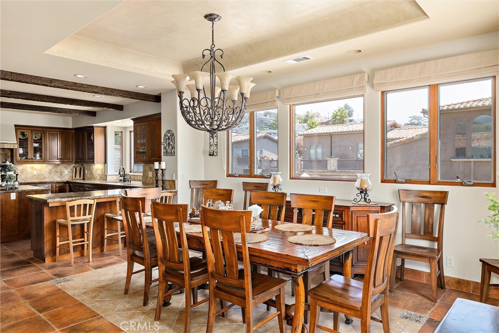 Authentic Spanish Style Meets Modern Coastal Living THE best Cayucos location—“Old Town” with big, wide streets, just a short walk to the pier, beach, and downtown! Gracefully blending authentic Spanish design elements with a flowing contemporary floor plan, this exceptional home offers both striking style and versatile functionality. Thoughtfully designed with outstanding separation of space, it features quality coastal views and a layout that adapts to a variety of lifestyles. An impressive set of broad exterior steps leads to a grand entryway with a massive door that opens into a spacious foyer. Just off the entry, a cozy sitting area with open beam ceilings captures coastal vistas—creating a perfect place to relax. The lower level includes a spacious game room with a fireplace—ideal as a billiards room or easily adaptable for other uses. In addition to two guest bedrooms sharing a luxurious full bath, there is a third full bedroom and an additional full bathroom on this level, offering excellent flexibility. Laundry facilities are also conveniently located downstairs. A graceful oval staircase leads to the upper floor, where you’ll find the main living areas, including the open-concept living room, dining space, kitchen, and the expansive primary suite. The living room showcases a full bar with a dedicated beverage fridge and sweeping views of the coastline and downtown Cayucos. The island kitchen is a chef’s dream, offering custom cabinetry, stone countertops, a double oven, and a massive refrigerator. Every detail is thoughtfully curated for both function and style. At the rear of the property, an oversized garage with alley access includes a brand-new, spacious ADU with its own private entrance. Designed with the same Spanish-style charm, this 2-bedroom, 2-bathroom unit features one bathroom with a tub/shower combo and another with a walk-in shower. The ADU also includes enclosed garage parking and ample driveway parking in both the front and rear. Perfect for multi-generational living, guest accommodations, or potential rental income, this additional unit adds flexibility and value. This one-of-a-kind home truly must be seen to be appreciated. Don’t miss your chance to own a stunning blend of coastal elegance and architectural charm in the heart of Cayucos.