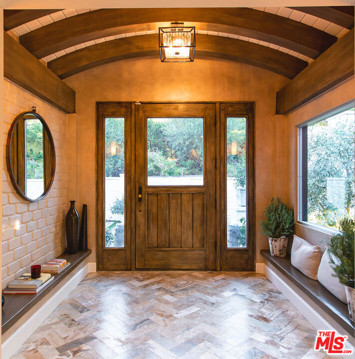 Rare Oceanview Home in Malibu’s Prestigious Serra Retreat. A Coastal Sanctuary with walkability to the best of central Malibu. Nestled in the heart of Malibu’s exclusive 24-hour guard-gated Serra Retreat, this extraordinary home offers a rare combination of privacy and ocean / mountain views; located just minutes from Surfrider Beach, Malibu Pier, Soho House, Malibu Farm, and a variety of boutiques and cafes, this home presents an unparalleled coastal lifestyle that is truly one-of-a-kind. Serra Retreat is renowned for its serene beauty, architectural distinction, and its iconic history as a haven for Hollywood legends. The 26-acre Serra Monastery adds a spiritual calm to this already exclusive and highly sought-after neighborhood. This is an opportunity to own a piece of Malibu’s most prestigious enclave, one of the few ocean view homes in Malibu close to its vibrant center at a price point below $10M. This fully remodeled modern craftsman-style home seamlessly blends luxury and comfort. Every detail has been thoughtfully curated, from the spacious living areas with vaulted wood ceilings and hand-painted murals, to the gourmet chef’s kitchen featuring a stunning marble waterfall island. Step outside into your private sanctuary, complete with a saltwater dipping pool, waterfall, spa, and a covered atrium with fire pit and BBQ, perfect for entertaining or relaxing in privacy. The property also includes a small detached office, ideal for remote work or creative pursuits. This home can be purchased fully furnished with stylish pieces from Restoration Hardware, offering an effortless move-in experience. Equipped with cutting-edge smart technology, including Lutron lighting, Sonos audio, a full security system, intercom, and iPhone-controlled features, this home is as functional as it is beautiful. With a newer metal roof ensuring durability and long-term protection, this home offers the ultimate blend of artistry, luxury, and beach lifestyle. Serra Retreat is waiting for you; where world-class living and surfing meets the soul of Malibu.