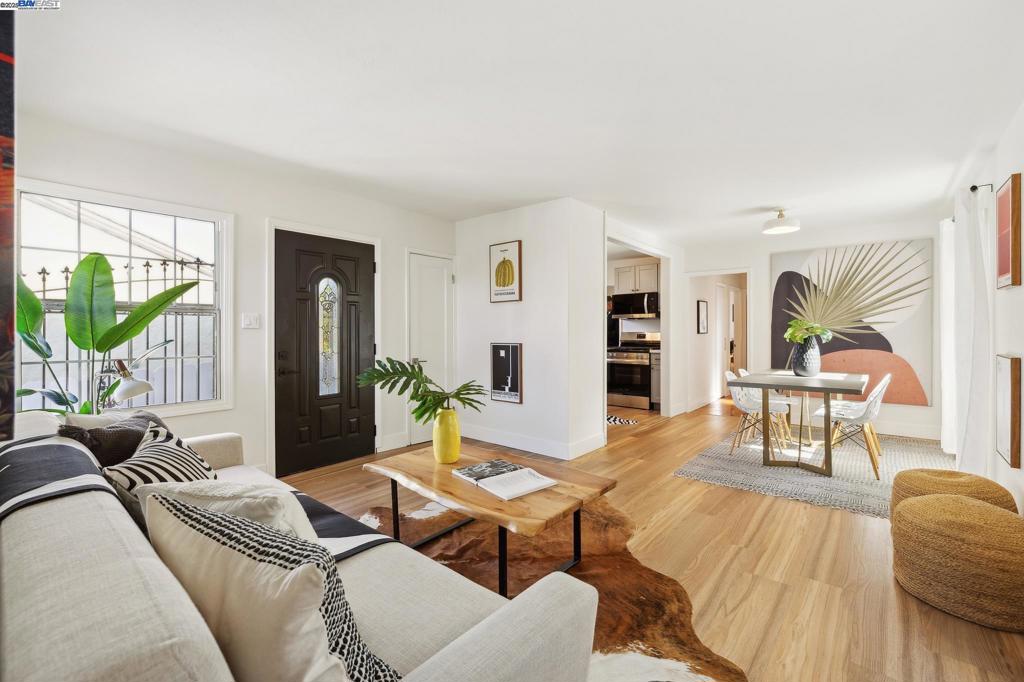 Enjoy comfort and convenience in this completely upgraded 3BD/1BA Mid-century home in Richmond’s Pullman neighborhood. Wonderfully located near the heart of the city, this 1018 SQFT home provides the low maintenance living that comes with recent renovations. The sunny home opens to a spacious living and dining area with beautiful new floors and lighting. The adjoining stylish kitchen boasts custom cabinetry, counters, new appliances, fixtures, and a laundry room off to the side. Step outside the backdoor for quick access to the backyard for great indoor/outdoor living on the sunny patio. Back inside, two bright bedrooms both have roomy closets and share a newly upgraded full bath. The third bedroom at the front of the home features another large closet, and could also serve as a spacious office. The entire property has fencing and parking within, and your commute is easy with nearby BART and Highways 80 and 580. Out your front door, public K-12 schools, shopping, and dining are all close by, along with excellent local parks with swimming pools, playgrounds, and tennis courts.