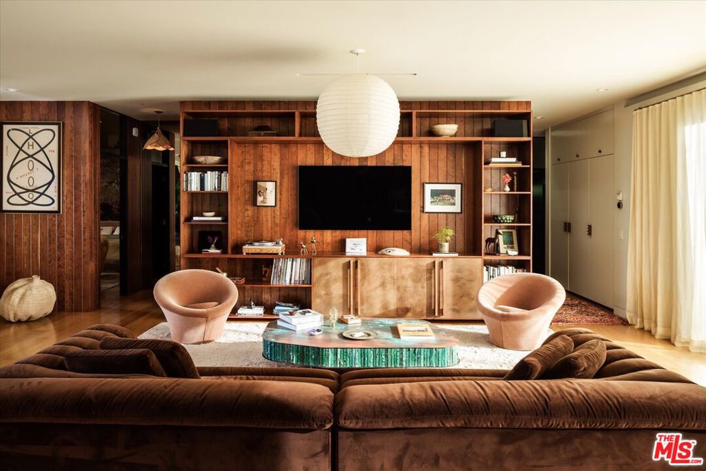Set behind gates and a long private driveway, the Sunswept Compound by architect Barbara Bestor, with a recent refresh by Swike and gardens by Judy Kameon of Elysian Landscapes, is an exceptionally private modern-ranch retreat set on more than half an acre. With sweeping mountain views, a flat grassy yard, pool, spa, and detached guest house, the property embodies the spirit of LA living–architectural pedigree, seamless indoor-outdoor flow, and layered, artful detail. A private and gated landscaped approach leads to the residence, where the signature open living space unfolds. Recently restored by its current owner, the living room, dining area, and chef’s kitchen–anchored by a substantial island–extend through pocketing Fleetwood doors to the outdoor dining terrace, lounge, and separate outdoor kitchen. Quintessentially Californian, this is indoor-outdoor living at its best. Flooded with natural light from skylights and expansive windows, the home is equally suited for intimate gatherings or large-scale entertaining, with multiple spaces to socialize around the fire pit, pool, gardens, or outdoor fireplace. The spacious primary suite offers a sizable closet and en-suite bath, with Fleetwood doors that frame lush gardens and open directly to the cedar soaking tub and outdoor shower. On the opposite wood-paneled wing, three guest bedrooms await: a private guest suite featuring an en-suite 3/4 bathroom, as well as two additional bedrooms with a shared full bath. The lower level offers a generous informal living room, ideal as a den, playroom, or screening room. The detached bonus structure on the property features a kitchenette and bath, providing flexible space for visitors or an at-home office. A third structure, a separate pool house, features a sauna, 3/4 bath, and additional storage. Rounding out the grounds are two separate and distinct areas for vegetable gardens, mature trees throughout, and parking for more than six cars. Sunswept is at once private, pedigreed, and deeply livable–an extraordinary creative compound designed for both entertaining and everyday life, just moments from Erewhon, Equinox, and the best Ventura Boulevard has to offer.