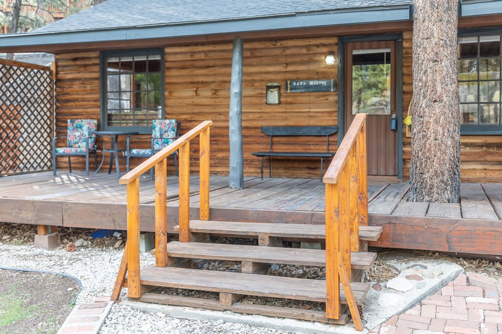 Charming affordable lakefront property located on beautiful Grout Bay in Fawnskin! Beautiful rustic home includes 3 bedrooms, 2 full baths, hardwood floors throughout, separate laundry area, and a light and bright kitchen! The third bedroom has its own entrance and bathroom and is currently set up as a studio type room with a futon, desk, refrigerator, microwave, and coffee bar, although it could be an office, home gym, or whatever you’d like! Gather around the fireplace in the cozy living room on those chilly mountain nights and relax and enjoy the ambiance! The front porch and patio area make for a great place to enjoy the crisp mountain air, entertain guest and watch the wildlife! The famous Big Bear bald eagles nest home to Jackie and Shadow is located in the forest just across the bay! This wonderful lakefront property sits just below Captain Johns Marina with only two other homes in the bay and has a shared dock and beach area with the neighbor directly next door. Plenty of parking for you and your guest as well as a storage shed! Newly paved access road down to the property, newly seeded lawn and sprinklers! Don’t miss out on this wonderful opportunity to have your very own slice of mountain paradise! Just in time for the holidays! Don’t wait! Start making memories now with your family and friends!