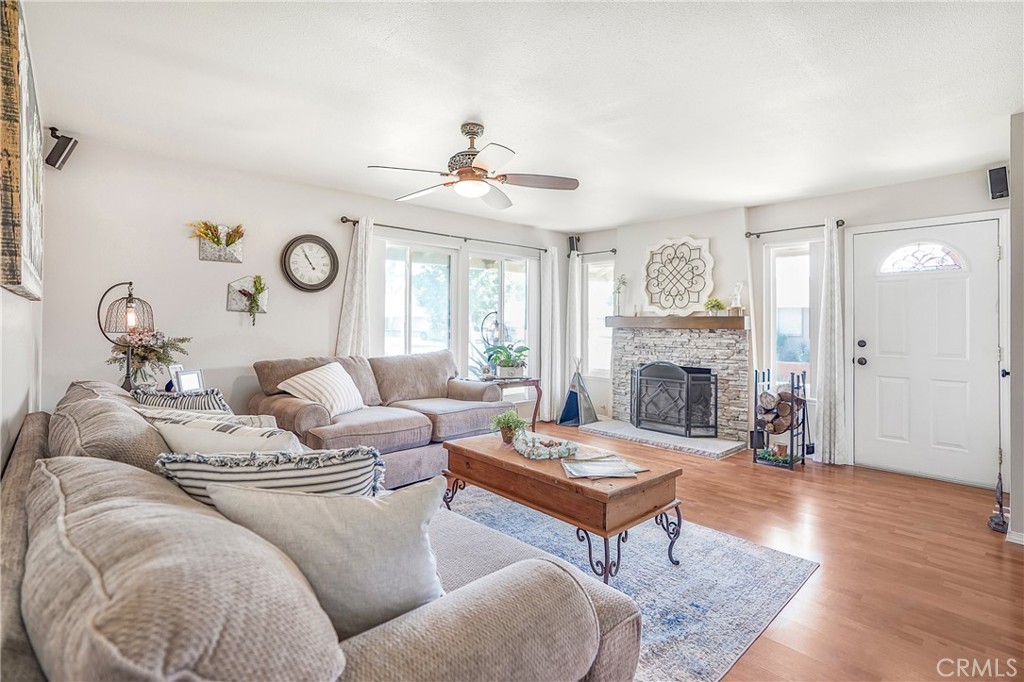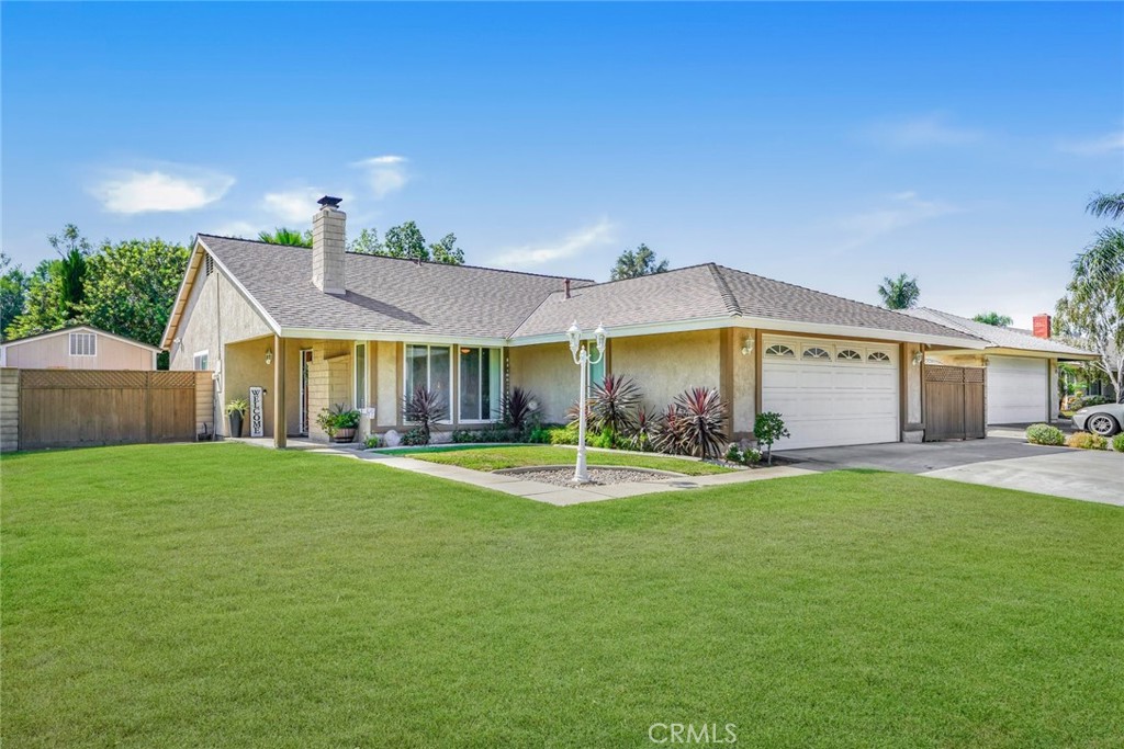 Welcome to a very well maintained and lovingly cared-for home in the heart of Chino Hills that’s move-in ready and eagerly awaiting your arrival. You’ll be charmed right from the start by its curb appeal, showcasing a manicured lush green lawn and thoughtfully designed foliage, an expanded driveway, and inviting front porch. Step inside to discover a generously sized living room, complete with a handsome flagstone fireplace, a large, custom-made wood mantel, and a wainscoted paneled wall. This sun filled & comforting room might make you want to stay put, but there’s so much more to explore! Next is a bright and functional kitchen highlighting white cabinetry, speckled light granite countertops, a central island, and modern, upgraded black appliances, creating a classic and clean look. while the layout is designed for efficient use of space. Adjacent to the kitchen is an open-concept living space which seamlessly blends the dining room and family room facilitating easy entertaining. Down the hall, you’ll find all three bedrooms and both bathrooms. The updated hallway bathroom features a clean and contemporary design with a newly tiled shower tub combo, modern dark wood vanity and a sleek undermount sink, complemented by a round frameless mirror above. The primary bedroom and two additional rooms feature ceiling fans, laminate flooring, and neutral paint. The en suite bathroom in the primary bedroom offers a walk-in shower and maintains a clean and bright aesthetic with light-colored walls and fixtures, complemented by a large mirror and organized storage for essentials. Relax in the peaceful backyard under the large covered patio, or venture around the corner to the impressive sized and versatile workshop/shed. This 10 ft x 16 ft. space is equipped with windows and electricity when plugged into its isolated circuit. Whether you envision it as a woodworking shop, a kid’s club house, your own get away space, an office, or just good old-fashioned storage, you’ll find that the possibilities are endless! An additional shed resides on the other side of the home, which has a removable cover. Plus, both sides of the property offer RV/boat/trailer parking potential (currently accommodating a boat). With proximity to schools, parks, shopping, and restaurants, this home is an ideal spot for all.
