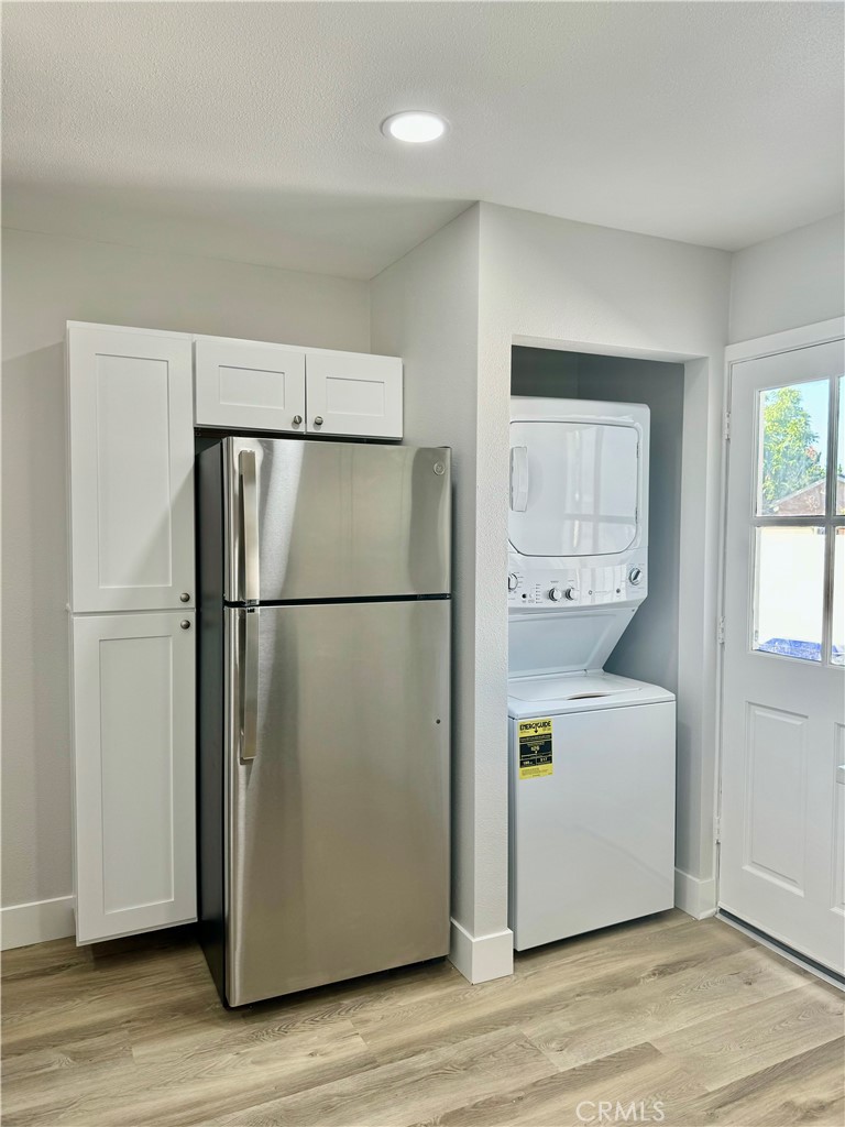Welcome to this recently renovated 1 bedroom 1 bathroom apartment! Features include: private fenced patio, vinyl flooring throughout, quartz countertops, recessed lighting, mini split air system, in unit stackable clothes washer/dryer, stainless steel kitchen applianes including microwave, refridgerator and stove, tankless water heater, and ceiling fans in all rooms. Includes off street parking. Owner pays water, trash, gas and gardener. Close to shopping, schools and freeway access.