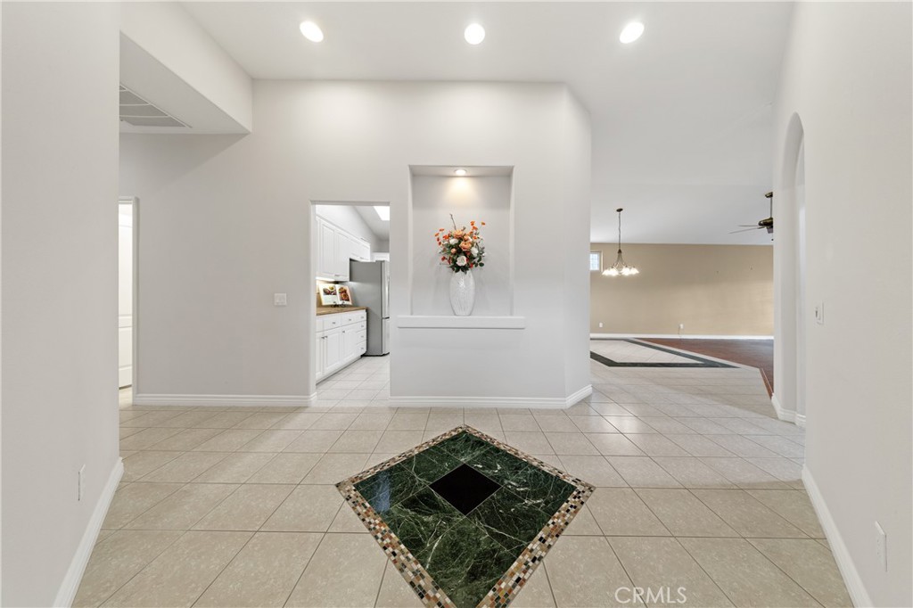 BEAUTIFUL SINGLE STORY 2,100 square foot home in The Colony, one of SoCal’s most desirable GATED SENIOR COMMUNITIES. A brick-accented walkway welcomes you to the double entry doors with security screens. Featuring plantation shutters throughout, upgraded tile & wood type flooring, wide baseboards & soaring ceilings. The large kitchen boasts white cabinets, stainless appliances, granite countertops and so much storage space with convenient pull-out shelves in many cabinets. The spacious great room is perfect for family gatherings with a fireplace & media niche. Walk out onto your solid aluminum patio cover with views to a WIDE NATURAL GREENBELT, AFTERNOON SHADE & easy-care landscaping. The spacious primary suite has plenty of room for your bed, a sitting area & offers a walk-in closet with built-in storage. The sumptuous bath is finished in spectacular marble with dual sinks, large soaking tub & a shower with a luxury rimless door. One of the bedrooms has built-in desks/storage cabinets and a walk-in closet with shelving. The 3rd bedroom is oversized and has a guest bath nearby. Indoor laundry with a sink, lots of storage cabinets, pull-out shelves and washer/dryer are included. The garage has lots of built-in cabinets, a workbench area, room for a golf cart + 2 cars & a newish garage door opener. You will love the ENERGY SAVING FEATURES of Low-E windows, attic fan, attic heat shield & extra attic insulation. Water heater installed in 2022 with a circulating pump. Whole house water filtration system replaced in 6/2023. The Colony is a PREMIER GATED SENIOR COMMUNITY for ages 55+ with a RESORT CLASS CLUBHOUSE, year-round pool, 2 spas, lighted pickle ball/paddle tennis and tennis courts. You can enjoy the gym, library, ping pong, billiards, hair/nail salon. There are groups & activities for all interests with an auditorium for shows, dances, banquets, concerts, movies, bingo & parties for all occasions. A privately owned 18-hole golf course is inside the gate. The HOA waters & maintains all front landscaping. Guard gated entry and 24-hour security patrol give you peace of mind. Close to stores, restaurants, medical, casinos and wineries. You will love this turn-key home, ready for you today. Welcome to the Colony with friendly neighbors and sense of community as you enjoy TRUE RESORT STYLE SENIOR LIVING.