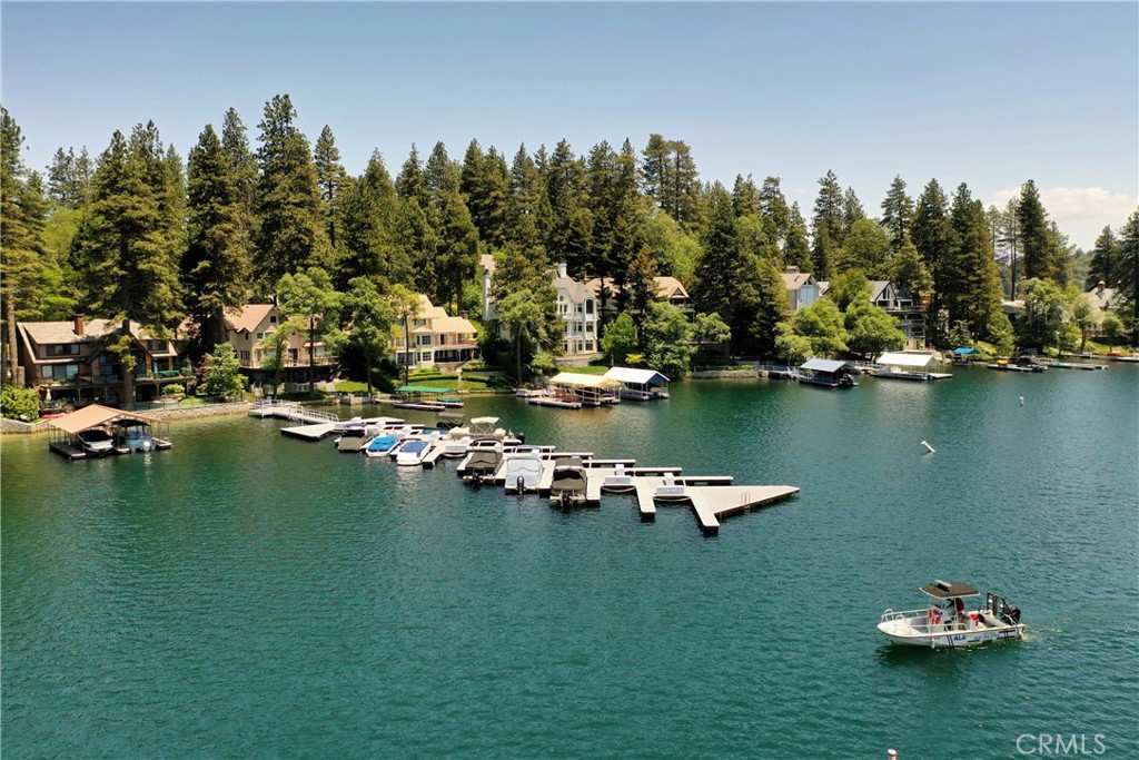 REDUCED TO MOTIVATE! DON’T MISS THIS OPPORTUNITY in this Charming English Tudor in Prestigious Point Hamiltair with Boat Dock on Private Lake ArrowheadBehind the coveted gates of Point Hamiltair, one of Lake Arrowhead’s most prestigious lakeside communities, discover this timeless English Tudor-style retreat. Tucked at the end of a quiet cul-de-sac, this beautifully updated home offers privacy, charm, and modern amenities in an idyllic setting. Boasting level entry with an attached 2-car garage, this 4-bedroom, 3-bath residence sits on a private, tree-studded lot surrounded by towering pines, perfect for those seeking serenity and natural beauty. Inside, enjoy an updated kitchen, wood floors, and a spacious floor plan designed for effortless indoor-outdoor living. The large entertaining deck invites gatherings under the canopy of trees, ideal for summer evenings or morning coffee. Just a short stroll away is your private boat slip on exclusive Lake Arrowhead, Southern California’s premier private lake community, offering boating, fishing, swimming, and year-round recreation. Whether as a full-time residence or a luxurious weekend retreat, this exceptional property blends classic Tudor charm with modern comfort in an unparalleled lakeside setting.