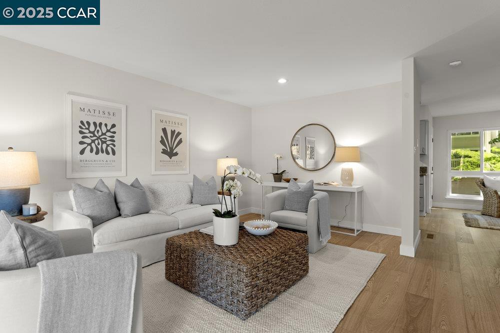 Don’t miss this beautifully updated townhome located in Moraga’s sought-after Woodminster community. This 3BR/2.5BA multi-level home lives like a single-family residence, with expansive dual pane windows offering serene views & abundant natural light throughout. The open living area features a gas fireplace, hardwood floors & flows seamlessly to a large deck—perfect for entertaining or relaxing among the trees. The modern kitchen boasts granite countertops, SS appliances, & pantry, along with a sunny breakfast nook & attached deck, perfect for your morning cup of coffee & some afternoon alfresco dining. Upstairs, three spacious bedrooms include a light-filled primary suite w/a walk-in closet & two additional bedrooms with custom black out shades. Not to be overlooked is the “fully finished,” attached two car garage that features, epoxy floors, custom cabinets, bike storage, laundry hookups, utility sink & a great spot for your home gym! Other recent upgrades include dual pane windows & doors, LED recessed lighting, fresh paint & hardwood floors. Enjoy community amenities like a remodeled pool, clubhouse & ample guest parking. Nestled near top-rated Moraga schools, Moraga Commons park, Sunday Farmer’s markets, hiking/biking trails, & steps from the Rheem Theatre & shopping center.