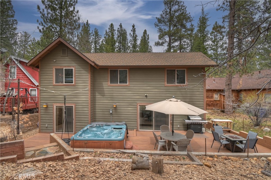 This home is for those that want a remodeled house with room to gather with all of their loved ones under one roof ~ As you enter you will love the high ceilings and native rock wood burning fireplace in the living room ~ To your right you have your large dining area for holiday meals with the family ~ The kitchen is absolutely gorgeous with it’s, butcher block island, custom wood cabinets (with push to open drawers), granite countertops and stainless steel appliances ~ The main level also has your family room with wet bar, a game room, your master bedroom and bathroom and another 3/4 bathroom ~ On the upper level you have a large loft, 4 more bedrooms and 2 more bathrooms ~ In the backyard you have your large deck with hot tub and plenty of room for relaxing and entertaining ~ Walking distance to Snow Summit, Big Bear Lake and the Village ~ Centrally located while being on a quiet cul-de-sac with little to no traffic ~ This is the mountain escape you have been longing for!