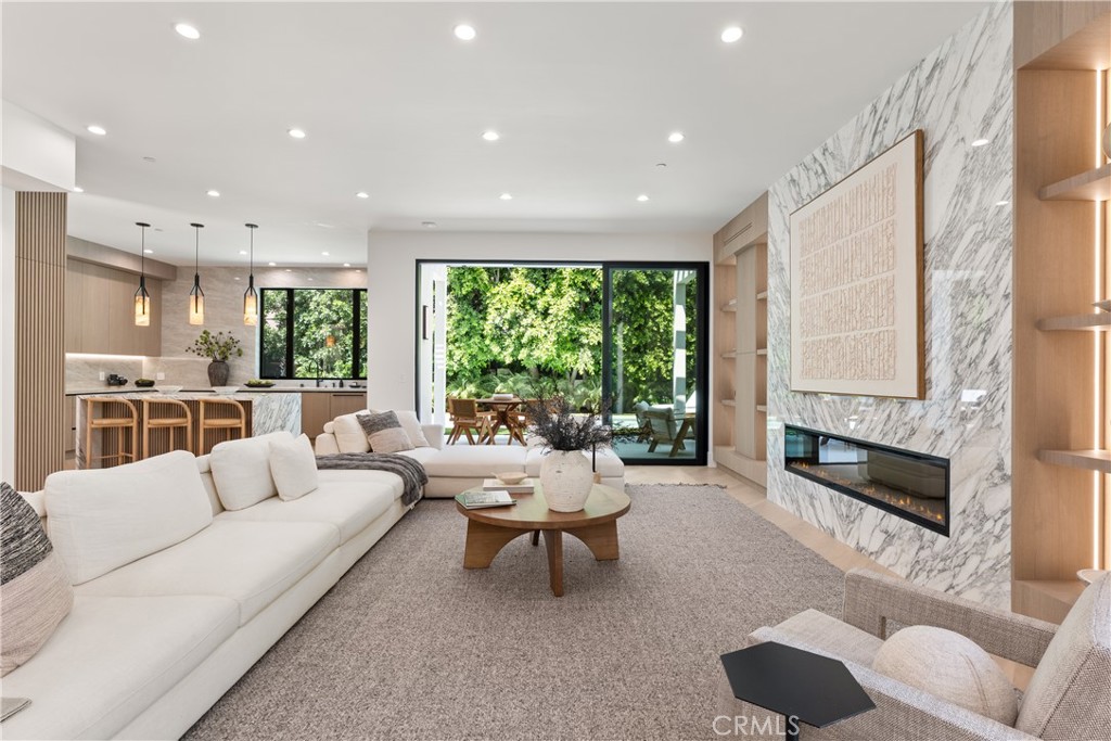 A bold statement in modern luxury living, this brand-new construction home is situated on a quiet tree-lined street in prime Studio City. Showcasing thoughtful design throughout, the bright and airy open-concept floor plan is defined by lofty ceilings and a spacious, flowing layout. At the heart of the home lies every culinary enthusiast’s dream, a designer kitchen equipped with a La Cornue range as its centerpiece, high-end Thermador appliances, a stunning waterfall island and walk-in pantry. The adjacent living room and formal dining area are highlighted by a dramatic fireplace framed by custom built-ins and two oversized sliding glass doors that seamlessly extend your living space outside – ideal for entertaining. Step out to your tranquil backyard retreat and enjoy the best of outdoor living with a sparkling pool/spa, built-in BBQ and plenty of patio space for sun-soaked lounging or al-fresco dining. Upstairs, there are three generously sized ensuite bedrooms and a dedicated laundry room. The primary suite features a private balcony, custom walk-in closet and spa-inspired bathroom, complete with a soaking tub, steam shower and double vanity. Boasting its own private entrance, the attached guest suite offers a living room with a kitchenette and ensuite bedroom with a walk-in closet – perfect for a home office/gym/studio, guests or multigenerational living. Additional highlights include a wine cellar, smart home features (Ring security system, Nest thermostat, Lutron lights), a gated front courtyard and two-car garage. This property is ideally located within the top-rated Carpenter School District and just moments away from Ventura Boulevard’s vibrant shopping and dining scene, the Studio City Farmers Market and so much more.