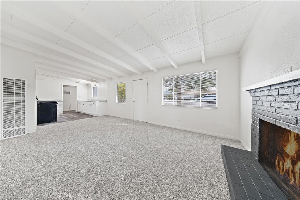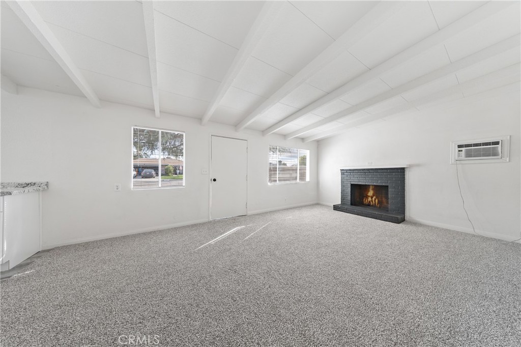 Freshly renovated 3 bedroom 1 bath home on large lot located in desirable Southeast Hemet. Living room has beamed ceiling and wood-burning fireplace. Kitchen has new granite-look laminated counter tops, gas stove, and built-in bookcase perfect for cookbooks and knickknacks. Full bathroom with new vanity and toilet, shelves, and tub/shower with decorative glass tile-work. Inside laundry/mud room. Linen closet. New paint and carpet. 3 wall ACs and gas wall furnace. Front and rear security screen doors. Covered patio. Block wall fencing on 2 sides. Side yard access to backyard wide enough for a car or a small boat or trailer. Rock-scaped front yard with huge shade tree.