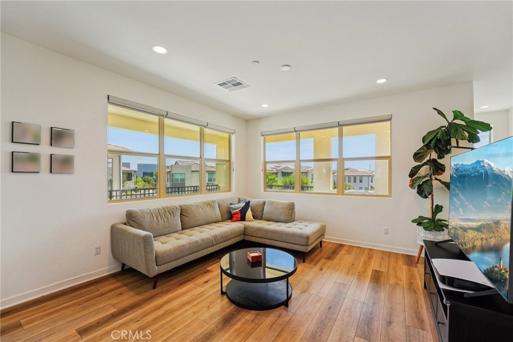 PAID-OFF SOLAR INCLUDED!! Experience the perfect blend of urban convenience and contemporary living in this stylish two-story condo nestled in the highly desirable community Ventana. Boasting modern design and a prime location, this 2-bedroom, 2-bathroom residence offers a comfortable and vibrant lifestyle. The lower level is the 2-car attached garage. Step up into a spacious and inviting open concept living space that seamlessly connects the living, dining, and kitchen areas. Large windows flood the interior with natural light, creating a bright and welcoming atmosphere. The sleek kitchen is a chef’s dream, featuring kitchen island, stainless steel appliances, quartz countertops, and ample cabinet space. Enjoy outdoor living on your private covered deck, perfect for alfresco dining, relaxation, or container gardening. It’s an inviting space to unwind after a long day. Throughout the kitchen area, you’ll find a second bedroom sharing a full bath and generous master suite offering privacy, comfort, and convenience. The suite features walk-in closet and en-suite bathroom with modern fixtures and finishes. Also, there is a dedicated laundry closet adds convenience to your daily routine, with space for a full-size washer and dryer. This home is part of a well-maintained community with pool/spa and BBQ area, providing opportunities for relaxation and recreation close to home. Also, with paid off solar panels which save a lot of bills. A perfect convenience in an unbeatable location – just walking distance to the plaza cross the street with Costco, market, dining, and easy access to freeway 15 & 60. Great opportunity to make this modern oasis your new home or to invest. Contact us today to schedule a private tour.