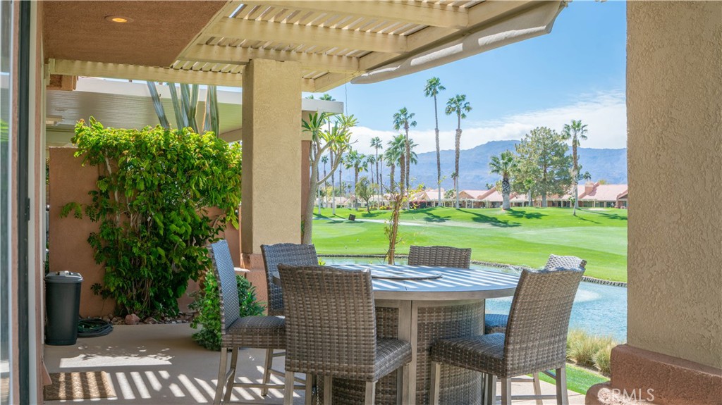 This upgraded and well-maintained home offers 3 bedrooms and 2 bathrooms. The open floor plan and vaulted ceilings in the living room, along with plantation shutters, provide unobstructed views of the golf course and mountains. The kitchen includes ample cabinet space, granite countertops, and appliances such as a dishwasher, gas range, oven, broiler, microwave, refrigerator, and garbage disposal. The master bedroom connects to a bathroom featuring tile finishes, updated step-in tile shower, dual sinks, and walk-in closet. The second bedroom connects to a bathroom with updated step-in tile shower. The third bedroom can also be used as a den or office. Oasis Country Club is a gated community that contains an 18-hole golf course, pools and spas, fitness center, tennis and pickleball courts, and a putting course, all within landscaped grounds This home is being offered fully furnished.