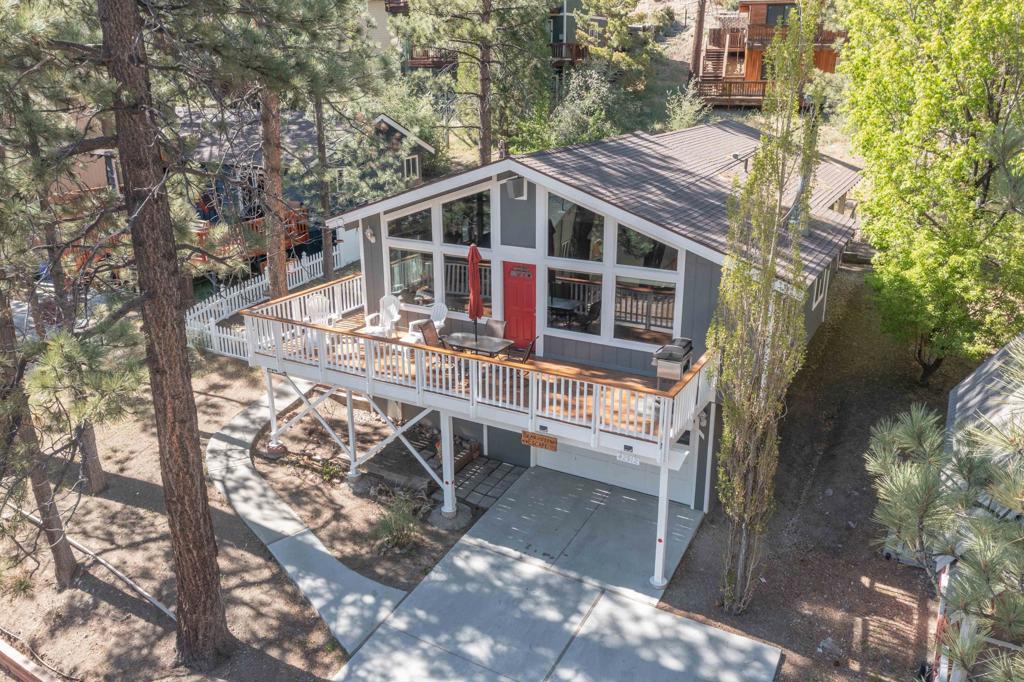 Bear Mountain Beauty: Fantastic central Moonridge location close to ski resorts, golf, zoo and great hiking and biking trails. You’ll appreciate the alpine views from the elevated deck, the vaulted wood beamed ceilings and abundant windows that provide loads of natural light. Pride of ownership is evident throughout this 3 bedroom, 2 bath cabin making it the perfect property to enjoy those long summer days and cozy winter nights. Sleeps a bunch, solid vocational rental. Fenced yard with hot-tub and a garage! Don’t miss it.