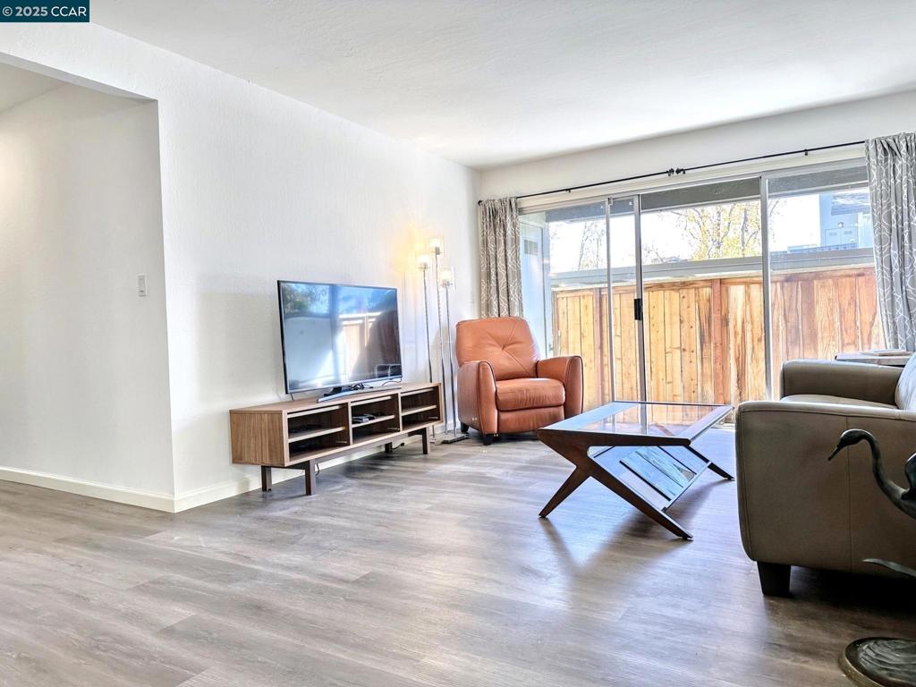 This ground-floor condo, designed in a townhome style, features two bedrooms and two bathrooms. It has been renovated with fresh wall paint and new engineered wood flooring, making it move-in ready. Additional amenities include access to a community pool and clubhouse, reserved covered parking, as well as the inclusion of water, trash service, exterior maintenance, landscaping, and insurance.