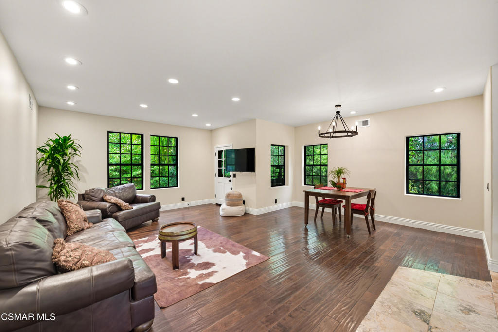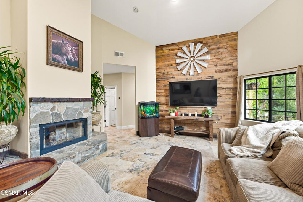 Nestled in Agoura Hills, this custom single-story home offers a rare blend of rustic modern style and serene country living. Set against sweeping views, the property is thoughtfully designed with lush landscaping, privacy, and chicken coops–perfect for those seeking both comfort and connection to nature. Inside, soaring ceilings and a light-filled living room create an open and inviting atmosphere. The kitchen features a central island, stainless steel appliances, and seamless flow for entertaining. The primary suite is a retreat of its own, boasting high ceilings and a spa-like bathroom with striking stack-stone walls and rich wood finishes. Additional baths include a spacious dual-vanity hall bath with a tub/shower combo, convenient full bath off the garage, plus a large half bath for guests. Outdoors, a sprawling pergola sets the stage for dining and entertaining, surrounded by mature landscaping that enhances privacy and beauty. A finished garage adds versatility for storage or creative use. This property is the ideal balance of modern comfort and rustic charm in a sought-after Agoura Hills setting.