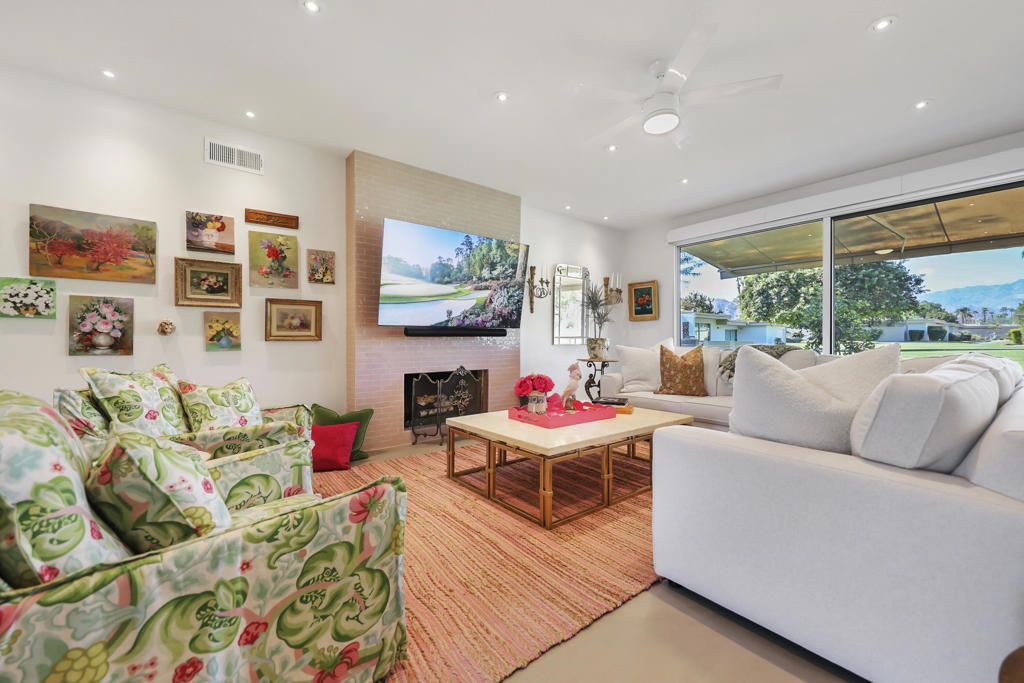 Fantastic Buy with ‘PANORAMIC MOUNTAIN VIEWS’ and ‘DESIRABLE SOUTH – FACING’ This is a Prime Location in Indian Wells; A Thoughtfully RENOVATED home, rich in design, offering Bright, Peaceful, and Enchanting Style!! Beautifully appointed on a corner location, upon entry, you will instantly see the GREAT detail and STYLE in upgrades throughout, including Upscale Led Lighting, New designer grass and woven wall coverings, New Hunter Douglas remote activated blinds, and designer textures and tiles showcasing the BEAUTY of the home! The Kitchen, offers an open concept, making entertaining seamlessly easy and Fun! From the great room step out onto your patio, basking in the serenity of the open greenbelts with those Gorgeous Mountain Views, complete with a retractable awning! Both bathrooms offer style with grand upscale tile and sophisticated fixtures. And don’t forget the golf cart garage, New Tankless Water heater, the List goes on! This is a MUST-see in person! Casa Dorado! Close to El Paseo, Great places for Dining, Tennis, Pickleball, 6 Pools, 2 Tennis Courts, 4 Hole Golf and more!