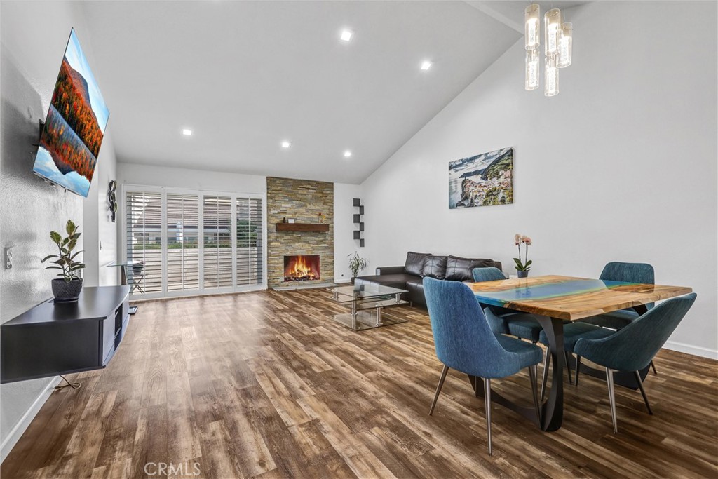 Beautifully updated, single-Level 2 bedroom, 2 bath home in the heart of Woodbridge. This home offers an airy open floor plan with vaulted ceilings and plenty of natural light. Modern engineered wood flooring flows throughout, with recessed lighting, plantation shutters, and smooth ceilings. The upgraded kitchen features quartz countertops, a gas range, stylish backsplash, newer cabinetry, built-in microwave, and refrigerator. The spacious Primary Suite features vaulted ceilings, recessed lighting, ceiling fan, and a remodeled bathroom with a large walk-in shower and double vanity with contemporary finishes. The secondary bedroom is equally nice with engineered wood flooring, plantation shutters, and a ceiling fan. Enjoy the private rear patio which is ideal for BBQs and entertaining. Attached 2 car garage for convenience. Located within the award-winning Irvine School District, this home also provides access to the incredible amenities of Woodbridge including: lakes, pools, tennis and pickleball courts, and scenic walking trails. Conveniently close to the 405 freeway, Irvine Spectrum, Irvine Valley College, and Hoag medical facilities.