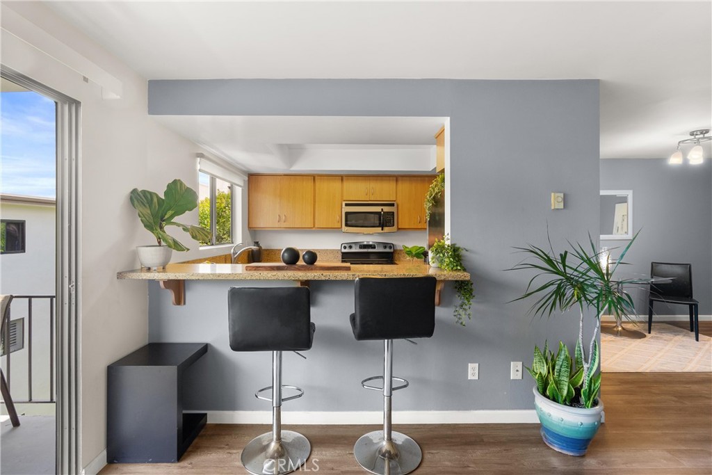 Beach Close! Bike Path straight to the Beach! TWO PARKING SPACES! Peaceful and serene TOP FLOOR location overlooking the lush gardens of the interior pathway, this unit is handsomely appointed and nicely upgraded. VA Approved Complex, Strong HOA. Modern vibes grace the interior of this beautiful Del Rey condo situated in the pristine RESORT-LIKE COMPLEX of Marina Gateway, featuring an extraordinary POOL, HOT TUB SPA, SAUNA, a FULLY EQUIPPED GYM, CLUBHOUSE and enchanted URBAN FOREST PATHWAYS and Koi pond. This urban gem features beautiful WOOD FLOORS throughout, a REMODELED KITCHEN with GRANITE counters, GLEAMING STAINLESS STEEL APPLIANCES and CUSTOM LIGHTING. The contemporary design of the spacious interior, boasts an open floorplan with formal dining area, breakfast bar and over-size sliding glass doors leading to a BEAUTIFUL BALCONY with TREE TOP VIEWS for enjoying your favorite Summer drink or al fresco dining! Other features include, new mahogany and quartz bathroom vanity upgrades, linen storage and a large WALK IN HALL CLOSET. The spacious bedroom is light and bright with a window framing tree top views. This unit comes with TWO Parking Spaces (not tandem), EXTRA CARPORT STORAGE, BIKE STORAGE and LOW HOA’s. GATED COMMUNITY. EASY COMMUTE, close to 90 and 405 FWYS and STEPS to the BALLONA CREEK BIKE PATH leading straight to the BEACH!! This is a unique opportunity, a modern urban forest beauty, surrounded by trees, close to the beach, in the wonderful Del Rey neighborhood of Los Angeles, where Marina Del Rey, Playa Vista and Culver City convene!