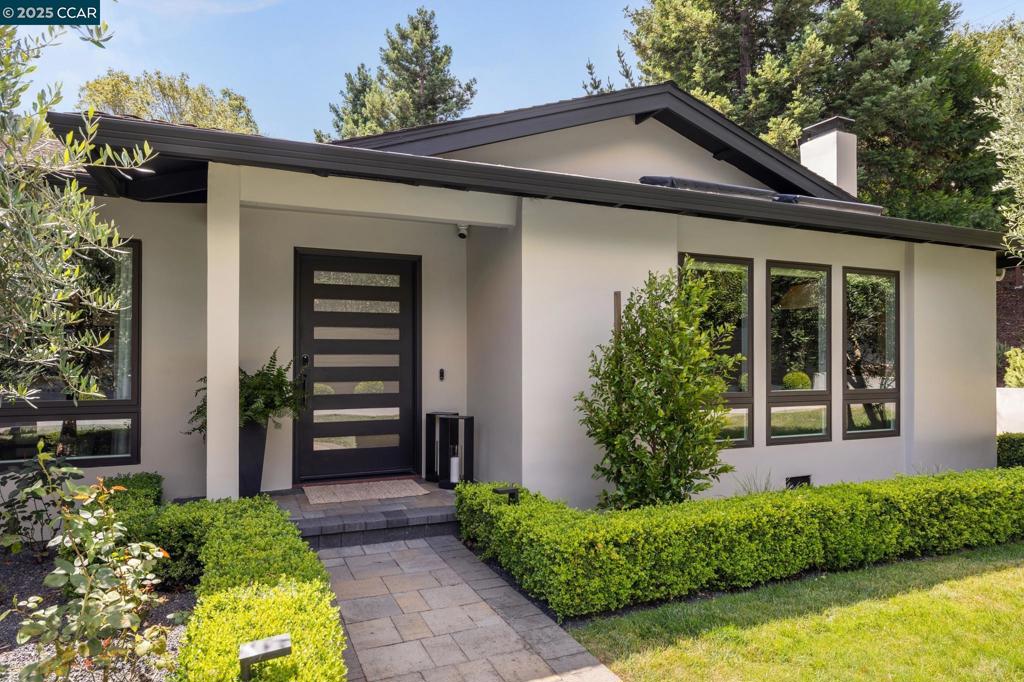 Modern luxury meets timeless design in this stunning, renovated one-level home tucked behind gates & set back from the street. W 4 beds, 3 baths, & details. Gourmet kitchen boasts a Calcutta marble island with custom edge, Bertazzoni range, Perrin & Rowe fixtures, Slave cabinetry, and a walk-in butler’s pantry with marble slab backslash, open shelving and Fisher & Paykel wine fridge. The living room boasts a dramatic floor-to-ceiling stone fireplace and large picture windows and access to the garden spaces. Adjacent, the dining room with Roman clay wall finish offers Calacatta marble beverage center, open shelvings and views of the gardens; perfect spaces for indoor outdoor entertaining. Spa-like primary boast Roman clay walls, spacious a walk-in closet & luxurious bath w Carrera marble w Phylrich fixtures. Moody office features built-ins w open shelving & pocket French doors. Cozy & chic family room w fireplace, built-ins & blackout shades. Private guest suite,2 additional bedrooms & designer baths complete fabulous interior spaces. Gardens boast expansive patios, lawns, veggie beds, olive trees, redwoods, and breathtaking Mt. Diablo views. This private oasis is just minutes to downtown, top schools & BART—20 min to SF!