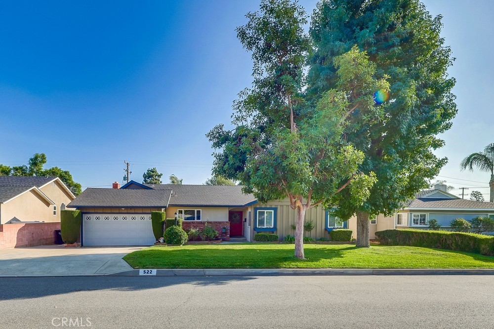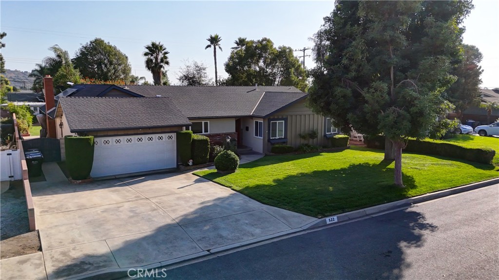 Welcome to 522 E Carroll Avenue, a beautifully maintained Glendora home combining spacious living with modern comfort and charm. The exterior features manicured landscaping and a clean lawn, leading to a welcoming front patio and striking red front door, enhanced with a security system for peace of mind. Step inside to rich dark wood floors and an inviting layout. To the left, the kitchen is a true centerpiece, featuring dark wood cabinetry, a massive island, abundant storage, multiple matching light fixtures, and recessed lighting. Light countertops complement the cabinetry, and an open passage connects the kitchen to the formal dining area, seamlessly linking the heart of the home with the living spaces. The main living room boasts a large stone fireplace and a second dining area, each defined by its own ceiling fan, creating distinct zones for entertaining and relaxation. A bonus room, separated by an arched opening and carpeted for comfort, offers flexible space for a home office, playroom, or media room, and provides direct access to the backyard. Another fireplace anchors the front living area, further enhancing the home’s cozy yet elegant ambiance. A hallway off the front entry leads to two generously sized bedrooms with ceiling fans and ample closet space, plus a full bathroom. The primary suite features its own ensuite bathroom, closet space, and ceiling fan, offering a serene retreat within the home. Outside, the backyard is an entertainer’s paradise. Sliding glass doors from both the dining room and bonus room open to a large space with a shaded seating area, concrete paths around a sparkling pool and jacuzzi, a lush grass section, and additional landscaping that provides privacy and beauty. With a thoughtful layout, multiple fireplaces, and a perfect blend of indoor and outdoor living, 522 E Carroll Avenue offers a comfortable, stylish, and inviting home in the heart of Glendora.