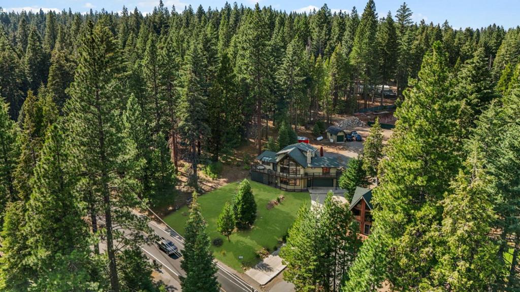 A stunning, entertainer’s delight with peek-a-boo views of the lake: 4 bedroom, 3 bath custom Lindal cedar home in Lake Almanor Country Club Estates. A spacious open beam, open concept layout with oak hardwood floors in the main living area. Cozy up to a warm fire in the stone fireplace in the living room with floor-to-ceiling windows. Chef’s kitchen features granite countertops, a gas stovetop, and a breakfast bar. The dining area is perfect for hosting large sit-down dinners and under bright atrium windows. On the other side is a family room and laundry/mud room. An expansive,984 sf, composite deck off the kitchen and family room and is level with parking area for convenient unloading of groceries. The 500 sf deck in the front of the house ends with a whimsical spiral staircase to access the outdoor space below. Primary loft suite retreat includes a private balcony deck, 2 bedrooms on the main floor, plus a ground-floor ensuite bedroom with patio access, outdoor shower and a 4-person, barrel sauna for ultimate relaxation. Amenities: separate one-car garage building, a Generac generator with its own dedicated propane tank, and an EV hookup in the 2-car attached garage. Large level lot above house with possibilities – a family compound, add a guest house, workshop – up to you.