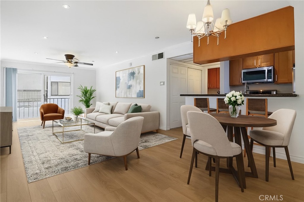 This ground-level unit features fresh interior paint, a spacious open-concept layout, and abundant natural light throughout – a thoughtfully updated 1-bedroom, 1-bathroom condo offering 674 square feet of comfortable living space in the highly sought-after Valley Village neighborhood. The living and dining areas flow seamlessly into a well-appointed galley kitchen with ample cabinetry, making it ideal for everyday living and entertaining. The generously sized bedroom includes a large closet and sits adjacent to a clean, modern full bathroom. Additional highlights include central heating and air conditioning, one assigned parking space in a gated garage, community laundry facilities, and secure building access. The property is part of a well-maintained complex with low HOA dues. Perfectly located near Ventura Boulevard, Studio City, and the NoHo Arts District, this home offers convenient access to the 101 and 170 freeways, trendy dining, shops, and entertainment. Zoned for highly rated local schools, including Colfax Charter Elementary, Walter Reed Middle School, and North Hollywood High School, this residence is an excellent opportunity for first-time buyers, investors, or anyone seeking a prime location in the San Fernando Valley.