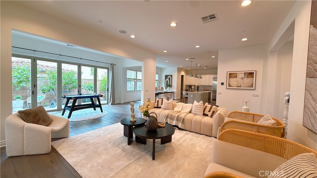 Exquisite Luxury Living at 54 Hearst, Irvine – A Stonegate Village Gem Nestled in the prestigious community of Stonegate Village in Irvine, this stunning 4-bedroom, 4.5-bathroom home with a loft offers the perfect blend of elegance, comfort, and modern functionality. Step inside to discover a gourmet chef’s kitchen designed to impress, featuring a large center island, quartz countertops, full stone backsplash, designer cabinetry, walk-in pantry, and top-of-the-line stainless steel appliances—including a refrigerator, 6-burner range, oven, microwave, and wine fridge. The open-concept main floor is ideal for both entertaining and everyday living, with a spacious living room, formal entry, and a seamless indoor-outdoor flow into the California room. A main-floor bedroom with full en-suite bath, beautiful wood flooring, cozy fireplace, and recessed lighting throughout complete the elegant ambiance. Upstairs, the luxurious primary suite showcases a tray ceiling with crown molding, a custom walk-in closet, dual vanities, a tempered glass shower, and a relaxing soaking tub. Each secondary bedroom includes its own en-suite bathroom, and the spacious loft offers flexible living space for a home office, playroom, or media area. Step outside to your cute, private backyard oasis, filled with charm and functionality—featuring more than 8 fruit and citrus trees that bring seasonal color, fragrance, and fresh produce right to your door. Whether you’re entertaining guests or enjoying a quiet morning coffee, this yard offers the perfect outdoor retreat. Sustainable upgrades include 9 solar panels, a tankless water heater, epoxy-coated garage floors, a long private driveway, and multi-sliding glass doors that enhance natural light and indoor-outdoor living. Community amenities include 7 parks, a soccer field, basketball court, 4 resort-style pools, 4 tennis courts, BBQ areas, picnic spots, and access to the scenic Jeffrey Trail—all conveniently located near award-winning schools, shopping, dining, and major freeways. Don’t miss this rare opportunity to own a designer home with a fruitful backyard in one of Irvine’s most desirable neighborhoods. Schedule your private tour of 54 Hearst today and fall in love with every detail.