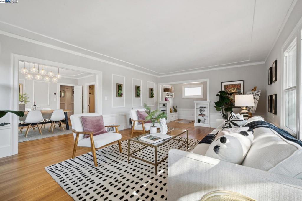 Prime Rockridge opportunity! This fantastic 2014 SQFT property features a stylishly renovated 2BD/2BA main home (1353 SQFT) plus a separate 1BD/1BA (661 SQFT) apartment perfect for income or guests. The living room, with its large picture window and classic fireplace, flows through French doors into a formal dining room, creating a seamless space for entertaining that is elevated by decorative mouldings, inset tray ceiling, and hardwood floors throughout. An updated kitchen connects to the dining room for easy hosting, while the additional breakfast nook is also an ideal home office with its sunny windows. The home’s unique floorplan offers two private bedroom suites, each with its own newly remodeled modern full bathrooms, providing wonderful privacy. The separate downstairs apartment is a full-service unit with its own kitchen, laundry, and full bath. A deck and large patio create an ideal space for indoor/outdoor living, and the deep backyard is framed by lush mature landscaping for privacy, including 6 fruiting trees. The long driveway provides parking for 2+ cars. Enjoy a superb location near the world class amenities of College Avenue and Telegraph Avenue, Temescal farmers’ market right across the street, and an easy commute via Rockridge BART or the Transbay bus nearby.