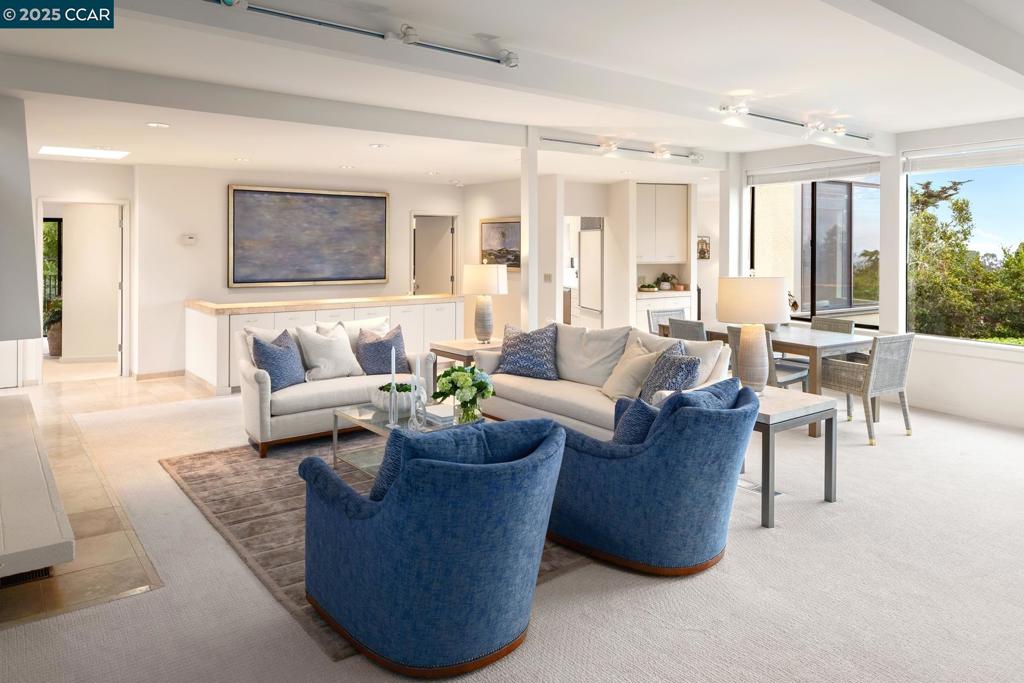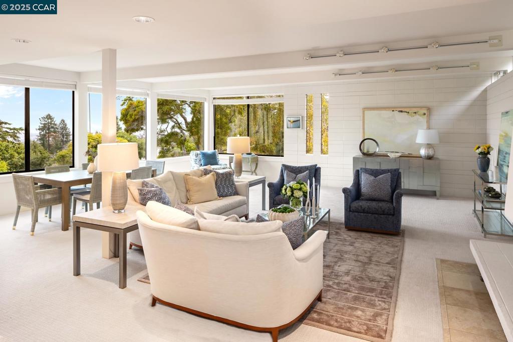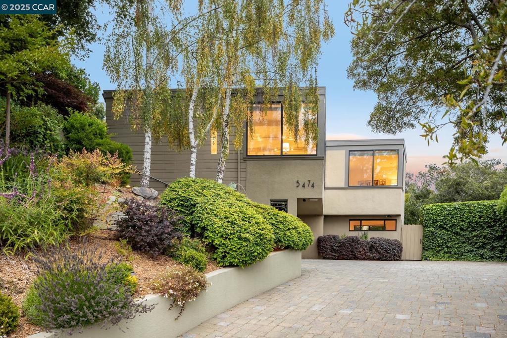 This retreat sits on the Piedmont-Oakland border, up a stone driveway and well removed from the road. Enter either through the two-car garage, or up a short stairway to the front-door in a secluded garden courtyard with a waterfall and bronze frog fountain. Enjoy the manicured garden for meals or a glass of wine in the twilight, as hummingbirds flit from one beautiful flower to another. Experience Bay views from the garden bench. The foyer sits under a skylight that invites in natural sunshine. The spacious (675 sq. ft.) living room alongside will be the center for entertainment and relaxation. It features commanding views of the Bay and Peninsula; an open fireplace to ward off winter chill; and track and recessed lighting. The nearby kitchen has cheery views to the south; it offers Miele, Sub-Zero and other top appliances and adjoins a cozy dining room. The principal bedroom suite completes the main floor. It has views on two sides and garden courtyard access, and ample closet space. Downstairs are two additional bedrooms and one fully remodeled bathroom. Each downstairs bedroom has garden views and ample closet space, and both feature extensive built-in drawers. The laundry room also is downstairs, so spacious that it accommodates both the washer and dryer and a home gym.