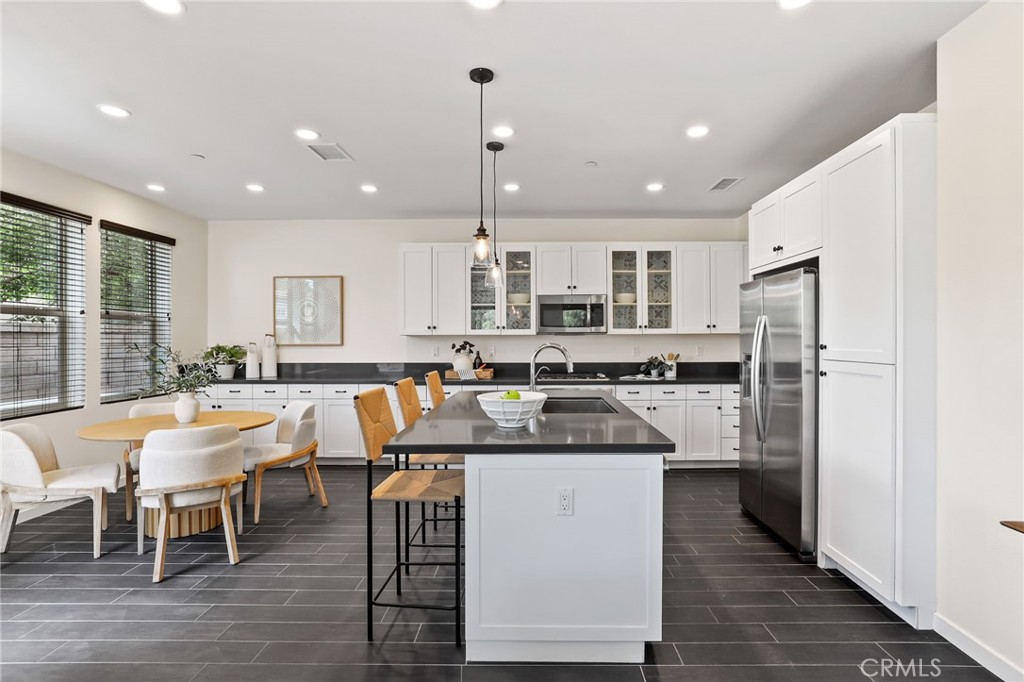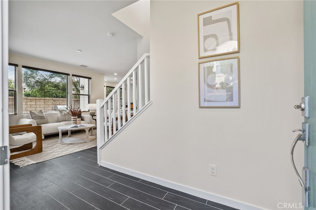 Absolutely Stunning On-Trend Home with FULLY PAID SOLAR! Tucked away on a premium private end-unit lot, this home offers the ultimate in privacy with no rear neighbor and breathtaking mountain views. Featuring 3 bedrooms, 2.5 bathrooms, plus a versatile office nook, this model-quality residence has been meticulously maintained for the best of California living. Step inside to find upgraded tile flooring flowing throughout the first level. The open-concept great room is designed for modern living, showcasing recessed LED lighting, custom paint, and a bright, inviting interior. Sunlight fills the space, highlighting the private backyard oasis just beyond. A designated dining area makes entertaining easy and seamless. The gourmet kitchen is a true showstopper, complete with upgraded stainless steel appliances, reverse osmosis system, extended white cabinetry, quartz countertops, a center island, and designer pendant lighting. Outside, the tranquil backyard delivers serious WOW factor with professionally designed with pavers, artificial turf, built-in firepit, and BBQ area. Backing to open green space, this end-unit retreat is perfect for relaxation and entertaining. The first floor also offers a highly desirable office nook and convenient half bath. Upstairs, you’ll find all three bedrooms and a laundry room. The primary suite is light, bright, and spacious, with sweeping mountain views. Its spa-like bathroom features quartz countertops, stylish tile, a restorative walk-in shower, and dual walk-in closets. This home comes packed with modern upgrades FULLY PAID solar with 10 panels, 220V EV charging in the garage, Full LED lighting package throughout, Upgraded Cat6 tech wiring for TV and internet, Enhanced insulation in floors and walls, Tankless water heater, 2-car attached garage. Residents of Baker Ranch enjoy resort-style amenities, including 3 sparkling pools, 8 parks, scenic hiking and biking trails, tennis courts, beach volleyball, basketball, a dog park, clubhouse, and more. With NO MELLO ROOS AND LOW HOA, this property is truly a rare find. Come see it today!