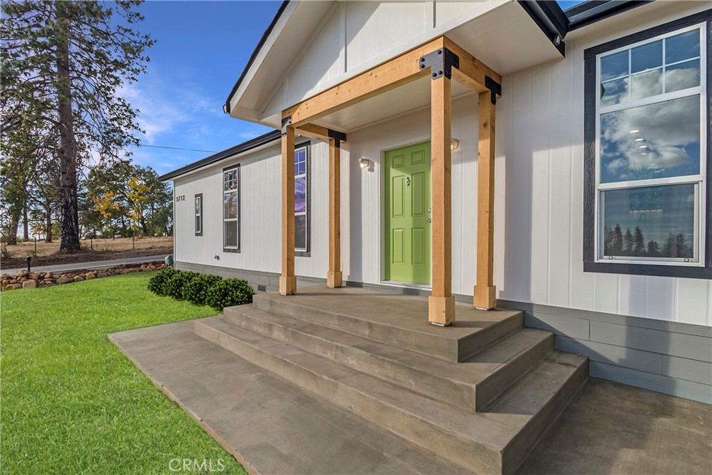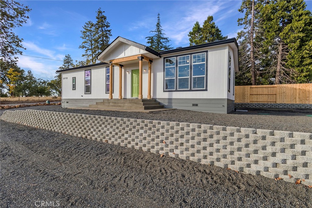 New Construction by Elegant Homes is now ready for a new Paradise Resident. Central Paradise Location on a large .63 Acre lot for this 3 bedroom 2 bath home. The builder placed the home on the lot so there is a ton of room for a garage/shop and even an ADU. The covered front porch welcomes you and your guests into the home. This new home offers the open floor concept. 9ft. Ceilings throughout the home. 5″ baseboards throughout. Upgraded windows with transom windows for extra light. Luxury Vinyl Plank Flooring. The spacious kitchen offers granite counters, shaker style wood cabinets, island with storage cabinets, Whirlpool stainless dishwasher, refrigerator, built in microwave natural gas Oven/Range and L.E.D. recessed lighting. The spacious primary offers two closets, dual sink vanities, granite countertops, built in shelves and step in shower with glass doors. The guest bath offers granite counters and a tub/shower. Inside laundry room with built in shelves and gas or electric hook ups. The home is wrapped in cement board siding. If you’re looking for extra space this could be the one!