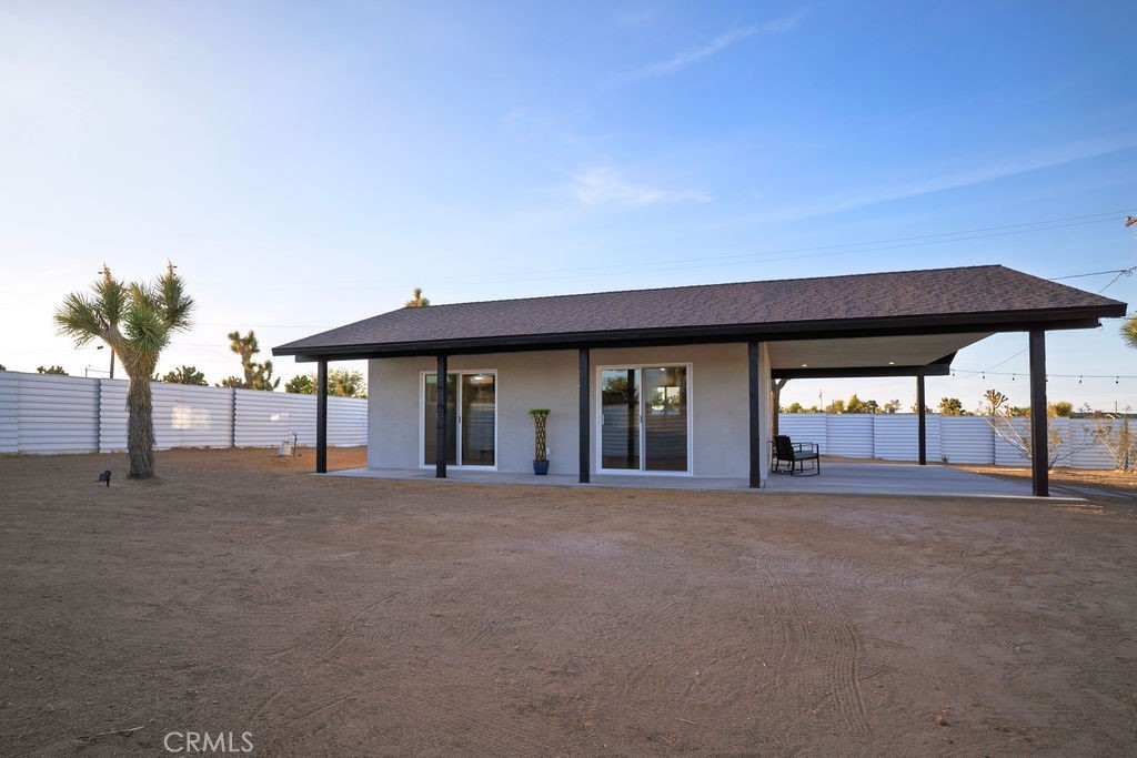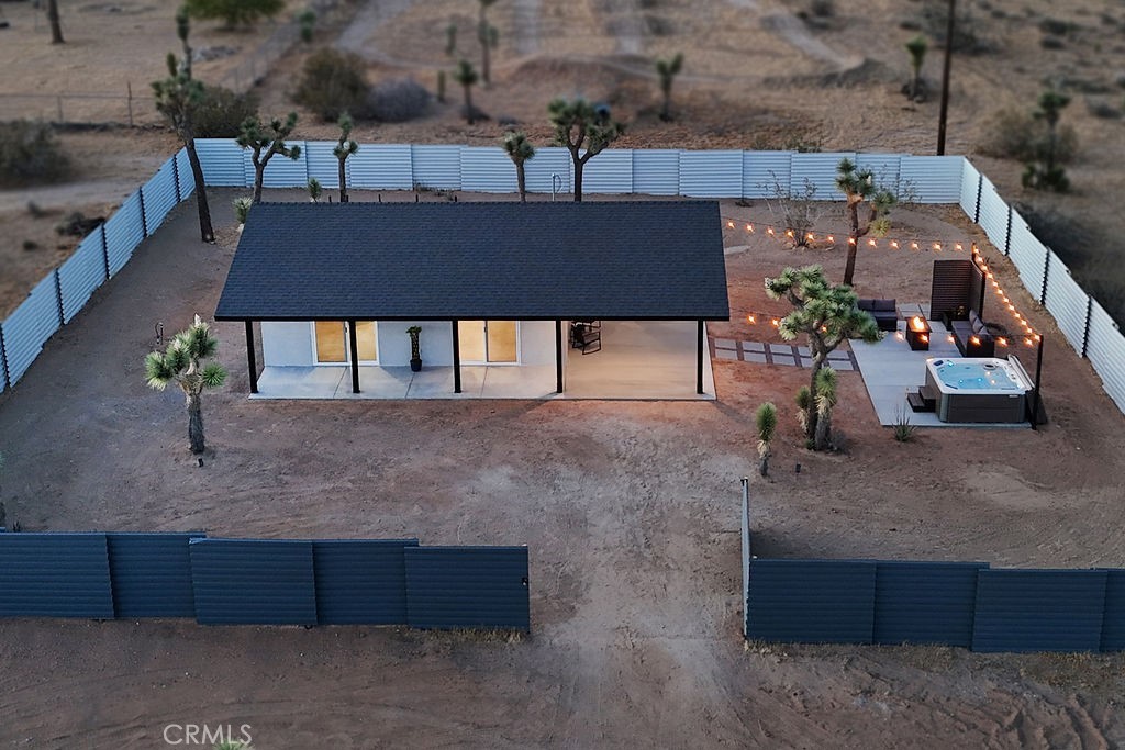 The moment you arrive you will know you have found “The One” ~ The home that feels as if it was built just for you ~ Tucked away for privacy but only minutes from Joshua Tree National Park, Old Town shopping, and local dining ~ “The Little House” is a brand new 2026 efficient gem ~ Inside this well-designed space is an open floor plan with high ceilings, dual zone mini splits, all in 1 washer and dryer unit in the full bath, and tankless Navian water heater ~ The kitchen features full size appliances with Quartz counter tops and a black farmhouse sink for a sleek modern touch ~ Two sets of dual-pane sliding doors lead to an expansive patio, seamlessly blending indoor and outdoor living ~ Outside, the property transforms into a private desert sanctuary ~ Enjoy watching the sun rises over the mountains as you sip your morning coffee, an outdoor shower for post-hike refreshes or spend evenings soaking in the spa and hosting friends around the firepit, creating memories under a canopy of stars ~ Privacy fencing ensures your outdoor living space remains your own serene haven ~ Small but mighty, this versatile property is perfect as a full-time residence, a serene weekend getaway, or a high-potential short-term rental investment ~ This one is a must see!