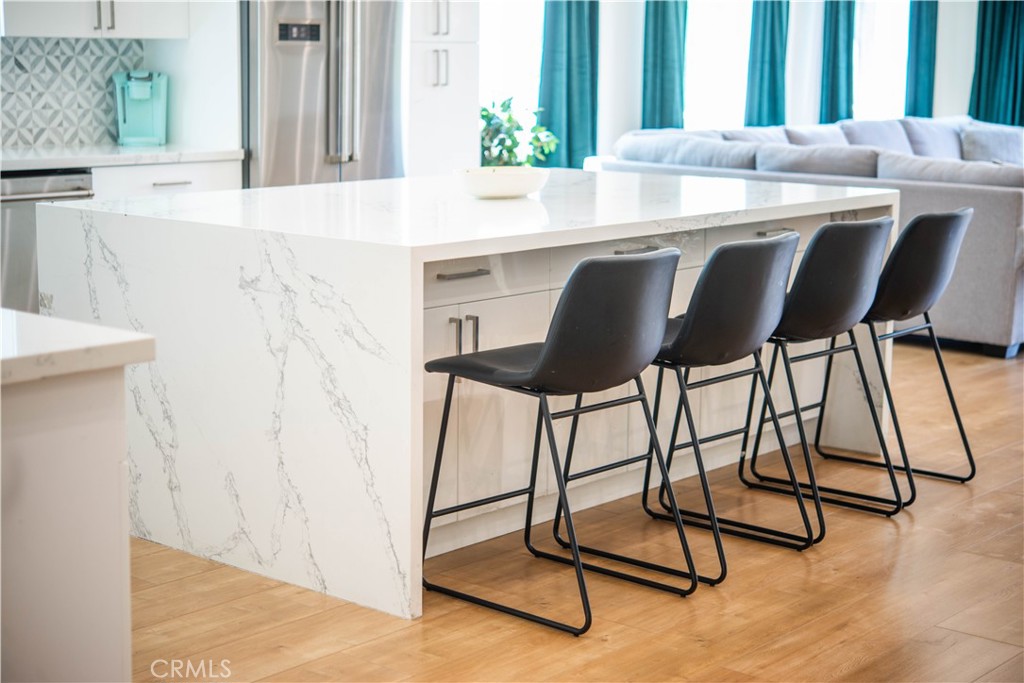 Stunning Remodeled Encino Park Home with Modern Upgrades and Energy Efficiency. Welcome to this beautifully remodeled and expanded 5-bedroom Encino Park gem, offering a seamless open floor plan flooded with natural light and highlighted by a striking exposed wood beam ceiling. From the moment you enter, you’ll be captivated by the expansive great room featuring wall-to-wall glass doors that open to a serene outdoor space. The chef’s kitchen is a showstopper — designed with quartz countertops, a spacious eat-in island with ample storage, soft-close white cabinetry, premium Thor stainless steel appliances, and a massive walk-in pantry for ultimate convenience. This home includes three generously sized bedrooms near the front of the house, accompanied by a large shared bathroom with double vanity. The luxurious primary suite is a private retreat with a walk-in closet, spa-like bathroom featuring an oversized shower, soaking tub, and dual sinks. An additional en-suite bedroom with its own walk-in closet and full bath adds flexibility for guests or extended family. Step outside to your private backyard oasis, complete with low-maintenance turf, a durable Trex deck perfect for entertaining, and lush landscaping. Enjoy energy efficiency year-round with fully owned solar panels and Tesla Powerwall batteries, keeping your electric bills low and your home powered even during outages. This move-in ready home blends comfort, luxury, and sustainability — don’t miss this rare opportunity in Encino Park!