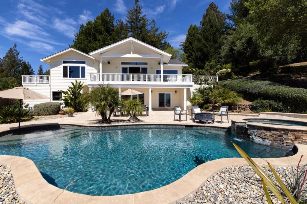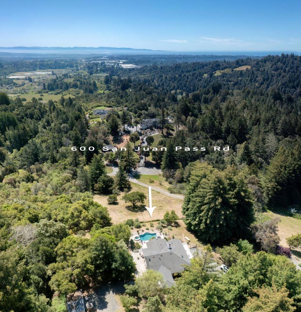 Stunning Ocean View Estate in Gated Corralitos Community! Perched atop a scenic hilltop in a private gated enclave of Corralitos, this spectacular custom-designed home offers breathtaking ocean and valley views on nearly five sprawling acres. Perfect for entertaining, relaxing, or expanding, this one-of-a-kind property combines luxury with tranquility just minutes from town. This spacious residence features 4-bedrooms plus a bonus 5th/office, along with 3-full bathrooms, including a luxurious steam shower in the primary suite. Vaulted ceilings, recessed lighting, and newer flooring create a bright and inviting atmosphere throughout. A custom designed pool/hot tub overlooks sweeping ocean/valley views, while multiple decks provide the perfect setting for entertaining family and friends. The property offers potential for an ADU, and fenced areas are ideal for animals such as dogs, goats, and chickens. Detached bonus shed great for/work-out room/weekend projects. A newer Generac generator, powered by one of 2 separate propane tanks one for the home and one for the pool and generator ensures peace of mind and functionality year-round. Zoned and ready for your dream lifestyle, this exceptional home offers privacy, comfort, and unmatched scenery in a highly sought-after location.