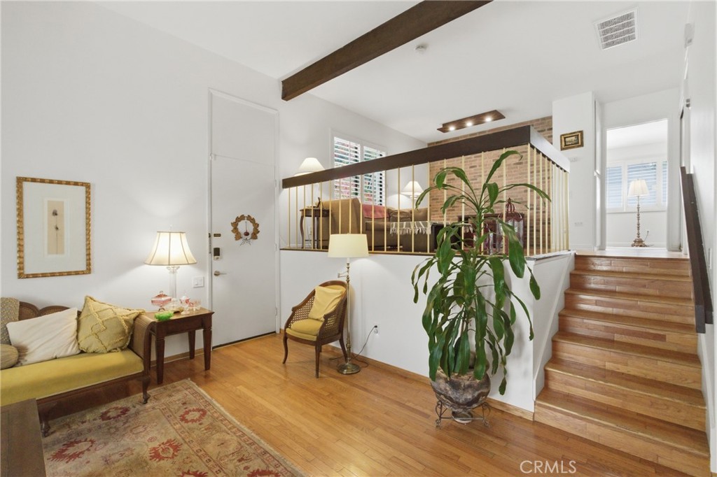 Stunning remodeled townhome in the highly sought-after Dove Creek community! This rare end-unit offers exceptional privacy and a true resort-style living experience! Step inside to an amazing split-level open floor plan highlighted by soaring wood-beamed ceilings, abundant natural light, and a spacious living room with a cozy fireplace! A versatile loft-like area overlooks the main living space…perfect for a home office, family room, or guest space! Beautifully remodeled kitchen features quartz countertops, newer appliances, and a sleek, modern design ideal for both everyday living and entertaining! Gorgeous primary suite serves as a private sanctuary, complete with a renovated bath and a large walk-in closet! Sliding doors off the living room open to an expansive private patio—perfect for outdoor dining, BBQs, and gatherings! Additional highlights include private in-unit laundry, 2-car garage with direct access, EV outlet, and hardwood flooring! Ideally situated in one of the best locations within the complex, residents enjoy lush, park-like grounds and resort-style amenities including a pool, spas, and tennis courts! Conveniently located near The Village, Westfield Mall, markets, dining, and endless entertainment options.
