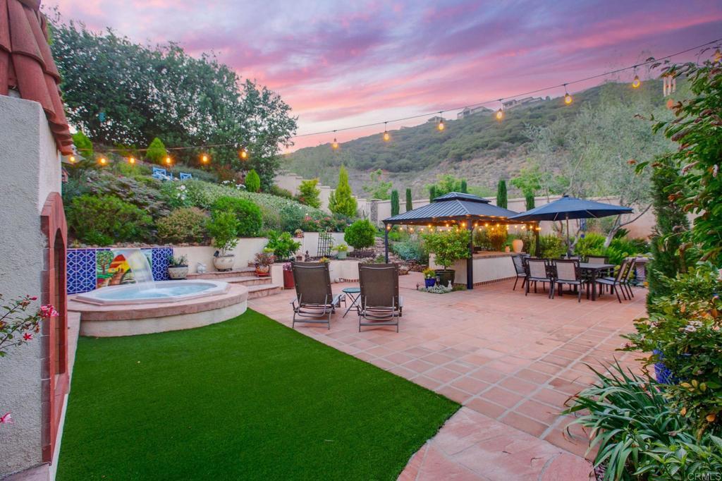 630 Atherton | Elevated Elegance in San Elijo Hills Perched atop Double Peak Ridgeline in the exclusive Atherton enclave—this home is a rare opportunity to own a former model home where timeless design meets thoughtful upgrades at every turn. This expansive, family-friendly residence showcases premium upgrades, curated to elevate everyday living. From the moment you arrive, lush, meticulously maintained landscaping sets the tone—this home is a true gardener’s paradise, boasting hundreds of flowering plants, mature trees, and succulents. The gardens transform into a glowing oasis by night—an experience that must be seen to be believed. Inside, designer finishes create a seamless blend of style and function. Custom hardwood cabinetry, rich granite countertops, and elegant French doors flow throughout the home. A gourmet kitchen equipped with GE Profile appliances and modern lighting opens to multiple outdoor patios, ideal for relaxed gatherings or grand-scale entertaining. Smart living meets stylish comfort: enjoy a fully paid solar system that saves thousands annually, whole-house built-in speakers and keyless entries The backyard is an entertainer’s dream: unwind in the custom spa and waterfall, gather around the outdoor Tuscan fireplace, and grill and entertain with ease—all framed by low maintenance turf and tranquil surroundings. Upstairs, the luxurious primary suite offers a private balcony overlooking the lush yard, a spa-like bath with a soaking tub, frameless glass shower, built ins and custom tilework. A built-in desk area is ideal for a library or work-from-home space, while the spacious loft provides flexibility for a playroom, game room, or potential fifth bedroom. Two additional bedrooms—one with an en suite—plus a dedicated laundry room complete the upper level. Additional features include plantation shutters throughout, gated entry, two indoor fireplaces plus a third outdoors, and a finished three-car garage with epoxy flooring and built-in storage. Located in nationally award winning San Elijo Hills with 1,000 acres of dedicated open space, ocean view hiking & biking trails, hilltop park, expanding town center and top rated schools. Minutes to beautiful California beaches, shopping, restaurants and major freeways. This home perfectly balances luxury, practicality, and proximity to everything you need.