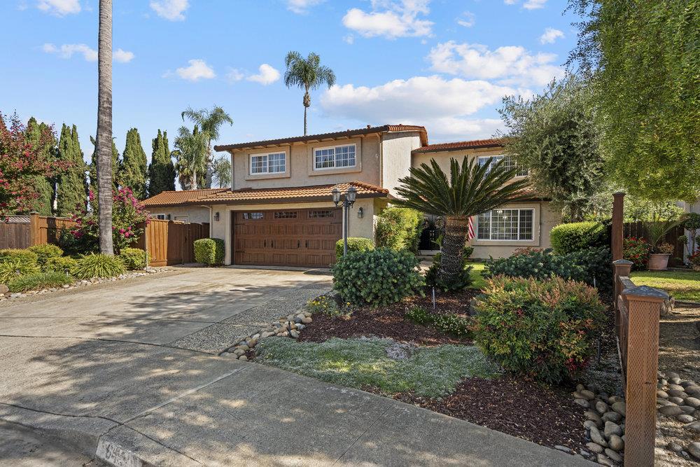 Welcome To Your Oasis! This spacious 5-bedroom, 2,814 sq. ft. home sits on a generous 12,570 sq ft lot and offers the perfect blend of comfort,entertainment, and opportunity. Relax year round with a heated pool and spa, or host gatherings under the covered patio surrounded by mature landscaping-an entertainer’s dream. Inside you will find a beautiful, updated, well maintained home featuring a large laundry room, open kitchen, a family room with fireplace, a formal dining room and living room. Upstairs are five bedrooms, two updated full baths, including a spacious primary suite with walk-in closet and a brand new private Trex deck retreat. Includes oversized bedroom that will accomodate all your needs. Enjoy the comfort of central AC and a whole house/attic fan, ensuring a cool atmosphere throughout with included solar to help keep the electric bill low. This home also boasts incredible potential for an ADU, in-law suite, workshop, or pool house, with an updated half bath, it’s ready to fit your vision! Perfect for large families, multi-generational living or those seeking rental income opportunities, this home is tucked away on a cul-de-sac near schools, commuter routes, walking trails, and shopping. A must see property offering space, style, and endless possiblities!