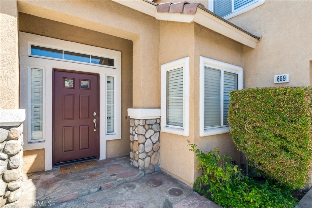Welcome home! Fabulous home in the gated community of Kensington! This home offers formal living space with a high, vaulted ceiling, abundant windows and pony wall to the formal dining room, featuring a sliding glass door to a backyard patio. The family room is cozy with a gas fireplace, media niche, and windows with plantation shutters. Open to the kitchen with breakfast bar/island, lovely eating area, pantry, stainless steel appliances, including gas cooktop, built-in oven, vent hood, microwave and dishwasher. Amazing floor plan with primary bedroom located on main level of the home, this bedroom features a cathedral ceiling, slider to the backyard, and walk-in closet. The primary bathroom offers dual sinks, with built-in vanity, remodeled soaking tub and shower. Convenient downstairs secondary bedroom and full bathroom. Laundry room with storage/linen cabinets. Upstairs offers two additional bedrooms- Hollywood bathroom with dual sinks and tub/shower combo. Backyard with lattice covered patio, cool grassy area and stylish palms. This community offers a pool and spa with large deck and patio tables. Don’t miss out on this home!