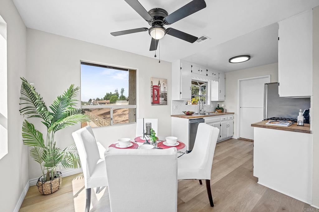 PRICE IMPROVEMENT with largest acreage available…. Lemon Grove is know for having the “Best Climate on Earth.” Only 12 miles to Downtown and 10 miles to the airport! Spacious and thoughtfully upgraded, this home sits on a large .32 acre lot at the end of a peaceful street with no through traffic. Step inside to the first living area, where light wood laminate flooring, large windows, and shiplap accent walls create a bright, airy atmosphere. The space flows seamlessly into the dining area and freshly painted galley-style kitchen, with crisp white cabinetry, a charming tile backsplash, butcher block countertops, and a box window that perfectly frames views of the Coronado Bridge on clear days. The refreshing breeze from Coronado drifts through the home, naturally keeping it cool and comfortable. Downstairs, a second living space offers a cozy retreat with a fireplace and a slider that opens to the expansive patio and backyard. This outdoor space is full of possibility—host movie nights under the stars, create a lush garden, or even add a pool. With the entire fence replaced in 2025, it’s a private and secure setting with sweeping neighborhood views. All bedrooms are thoughtfully located on the lower level. The primary suite features a walk-in closet and a beautifully remodeled ensuite bathroom, completed in December 2024 with modern touches like a heated towel rack, LED fog-clearing mirror, mosaic stone tile flooring, and a walk-in shower. Secondary bedrooms are nicely sized and share an updated guest bathroom, while the laundry room sits conveniently nearby. Additional updates include ceiling fans throughout, fresh interior paint, popcorn ceiling removal, new carpet, a newer sewage pump, and a brand-new roof. With friendly neighbors, nearby parks, schools, shopping, and easy freeway access, this home offers both comfort and convenience in a serene setting. Welcome Home!