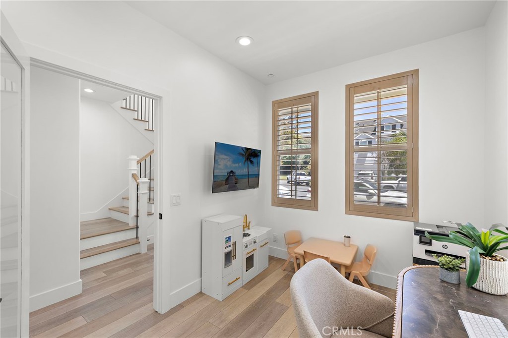 Discover the modern elegance of this charming culdesac home in the vibrant community of Ladera Ranch. This stunning property was Re-Piped and extensively remodeled with custom finishes worthy of a magazine feature. The charming white exterior with the custom window paned entry door and wrought iron driveway gate hints at the beauty beyond the exterior. Step into the reimagined floorplan with a convenient 4th Bedroom with thoughtful built-in closet and a full bathroom on the first floor. New LVP white oak look floors seamlessly flow throughout home highlighting the level 5 smooth drywall, the striking iron and wood staircase, built-in entry bench, natural wood plantation shutters, the reconfigured kitchen, and custom built-in media wall with floating shelves. This chef worthy kitchen elevates the culinary experience with a 48” slide in range with 6 gas burners, griddle and double ovens; an oversized range hood; farm basin sink; gorgeous chevron tile work; pot filler and walk-in pantry. Designer rattan chandelier illuminates the space as well as the black metal pendants and newly installed LED recessed lighting. Up the beautiful staircase are two secondary bedrooms, one with shiplap wall and both with custom closet organizers. Beautiful hall bathroom upgraded with white quartz counters with dual sinks, cantilevered black mirrors, charming vanity lights and tiled tub/shower area. The primary suite is oversized with a built-in media wall, and perfect nook for an exercise bike. The Primary bath is transformed into a personal sanctuary with a resort-style ambiance, featuring a floating poured-in-place concrete countertop, concrete bowl basin sinks highlighted with playful rattan pendants, a freestanding soaking tub, oversized polished concrete shower with frameless glass surround and a great closet with custom built-in organizers. Also on this floor are the laundry room, linen storage and built-in butcher block counter desk area. Enjoy the luxury of private outdoor space with bistro lights plus an exceptional outdoor space with an extended driveway with a gated entry and a unique porte-cochere, leading to a two-car attached garage with storage racks, tankless water heater, water softener and OWNED SOLAR PANELS. A Prime Location situated within walking distance to Poets Park, Oso Grande Elementary School, the Water park and numerous pools and parks. With the custom design and elevated features, this home embodies the essence of modern comfort and convenience.