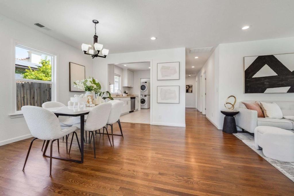 Welcome to this delightful home nestled in the desirable Garden-Alameda neighborhood of The Rose Garden community celebrated for its timeless architecture, rich heritage, and welcoming atmosphere. This meticulously maintained home features a practical, efficient floor plan with double-pane windows, central heating and A/C, and gleaming hardwood floors throughout. A spacious basement for additional storage.The inviting living room is filled with natural light, complemented by the warmth of a classic wood-burning fireplace. The updated kitchen is a chef’s dream, showcasing quartz countertops, a large S/S sink, a gas cooktop, & modern S/S appliances. Adjacent to the kitchen, the open dining room provides an ideal setting for entertaining or enjoying quality family meals. A conveniently located laundry area, just off the kitchen, ensures added privacy and separated from the bedrooms. All three bedrooms are positioned at the rear of the home, offering tranquil views of the garden & natural light. Both bathrooms have been tastefully updated with stylish new vanities. The expansive backyard presents endless possibilities for expansion or the addition of an ADU. Don’t miss this exceptional opportunity to own a beautiful home in one of San Jose’s most cherished neighborhoods!