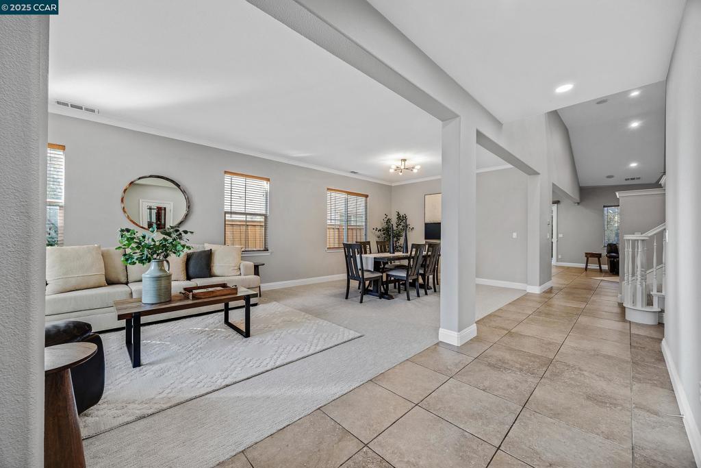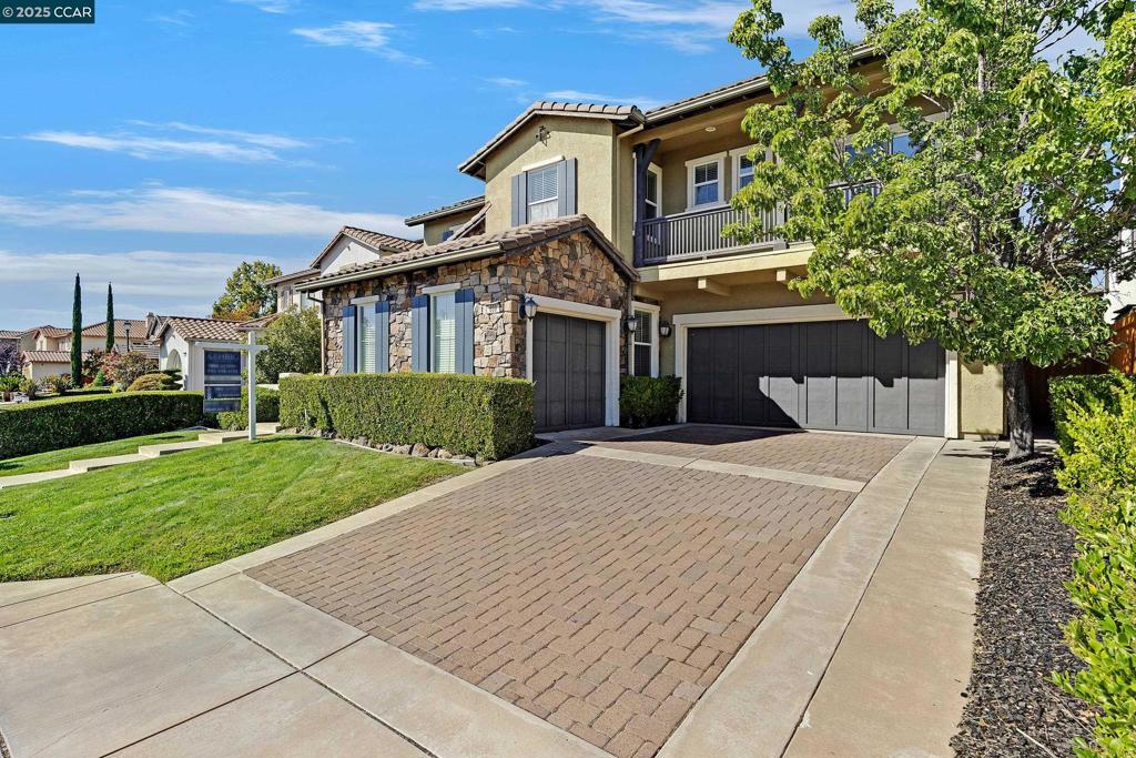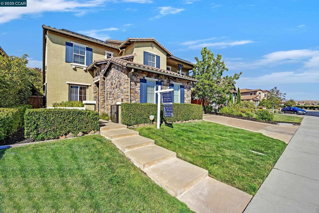 Welcome to this spacious and inviting home offering a versatile floor plan and thoughtful details throughout. Upon entry, you’re greeted by formal living and dining rooms, with a private office tucked off the foyer. The open kitchen and family room overlook the backyard, creating the perfect hub for gatherings. The kitchen features a large island with places to sit, a breakfast nook, plenty of cabinetry and stainless steel appliances. A wine cellar and convenient half bath for guests add to the main level appeal. The primary suite features soaring ceilings, a soaking tub, stall shower, dual vanities, and a walk-in closet. Upstairs you’ll find three bedrooms, including one with a Jack-and-Jill bath, plus a hall bath with double sinks and shower over tub. A bonus room and built-in hallway desks provide ideal space for work and play. The backyard is made for entertaining with a pergola-covered patio, built-in stone fireplace, and plenty of room for dining and lounging. Enjoy access to the community park and a location close to top schools.