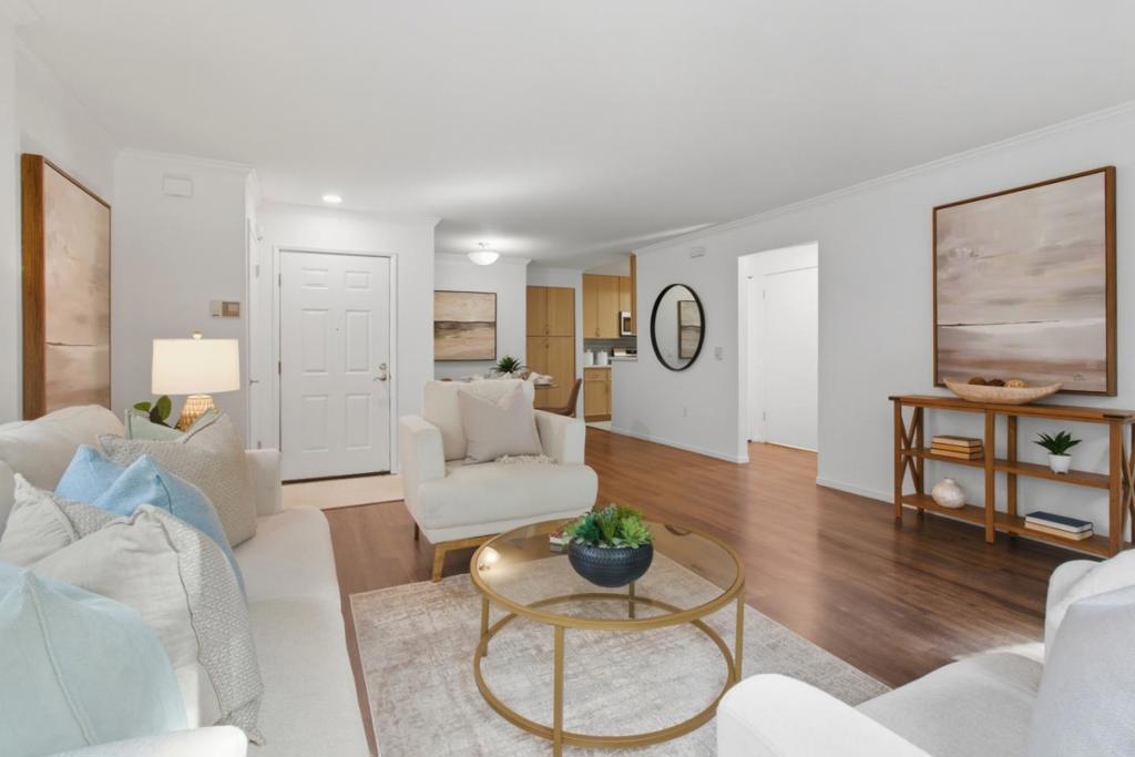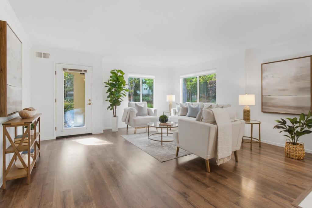 Welcome to this newly remodeled one-bedroom unit nestled in the sought-after Crescendo community. The spacious living room opens to a relaxing patio. The modern kitchen has been completely updated featuring all new appliances and stylish quartzite counters, with a pantry and ample cabinet storage. The generously sized bedroom offers a closet organizer and sliding door to the patio. Entire unit freshly painted. The attached garage includes shelving to keep additional belongings organized. In-unit washer/dryer. All appliances included in the sale. Enjoy the community pool/spa and the serene landscape. Ideally located in the heart of innovation, just minutes away from top tech companies, Levi Stadium, Rivermark, Light Rail and freeways. This condo is ideal for those who value both lifestyle and a prime location!