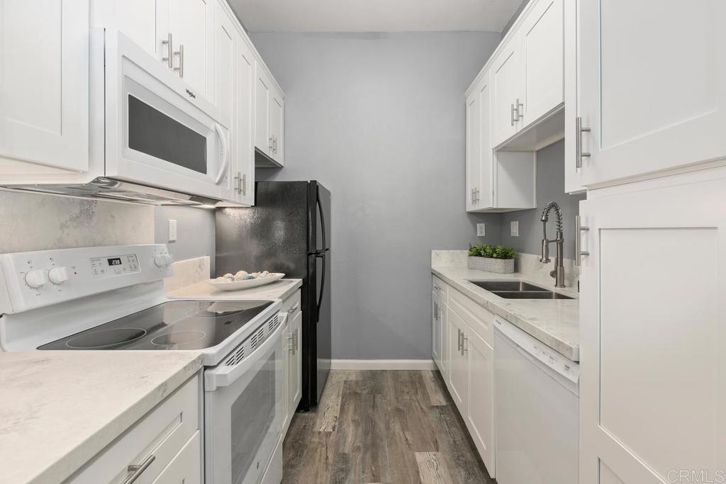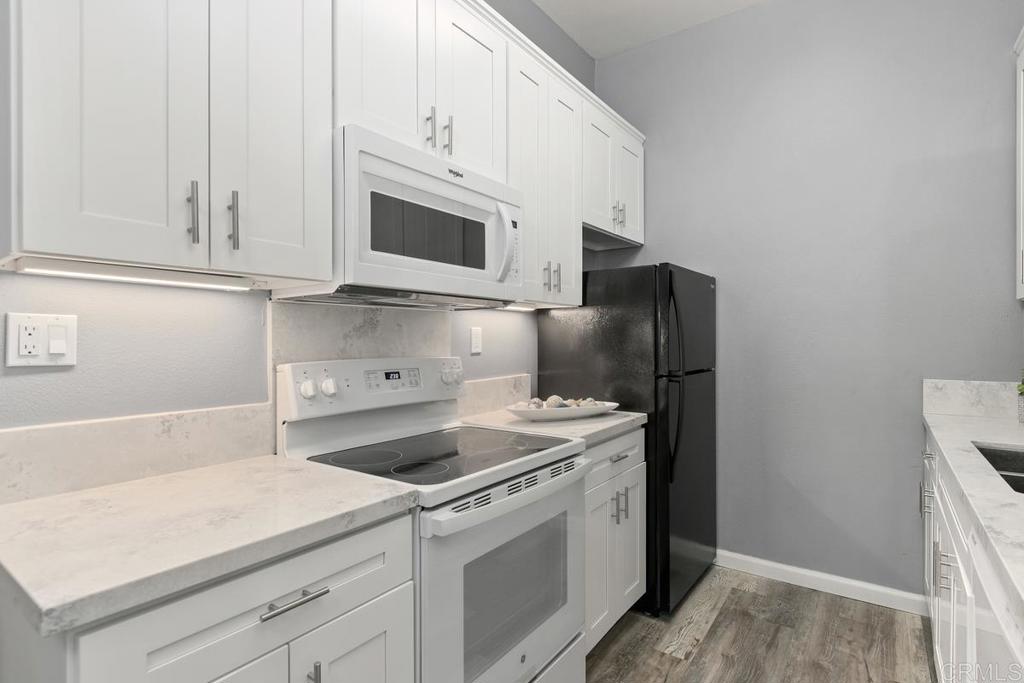 Seller will entertain offers between $459,000 and $499,000! REMODELED 1BD/1BA single level condo in the gated community of The Pines of La Jolla with a VIEW balcony. Highly desirable location in the complex – just one floor above the garage. Kitchen features newer white cabinetry, gorgeous quartz countertops, stainless steel sink and newer appliances. The bathroom was recently updated with a new vanity, custom tile and plumbing fixtures. Additional highlights include newer paint and baseboards, luxury vinyl flooring throughout and an elevator in the building allowing for easy access to the unit. The Pines of La Jolla features a pool and spa in a lovely garden setting. Excellent location within close proximity to UCSD, Doyle Park, beaches, and Westfield UTC for upscale shopping, dining and entertainment.